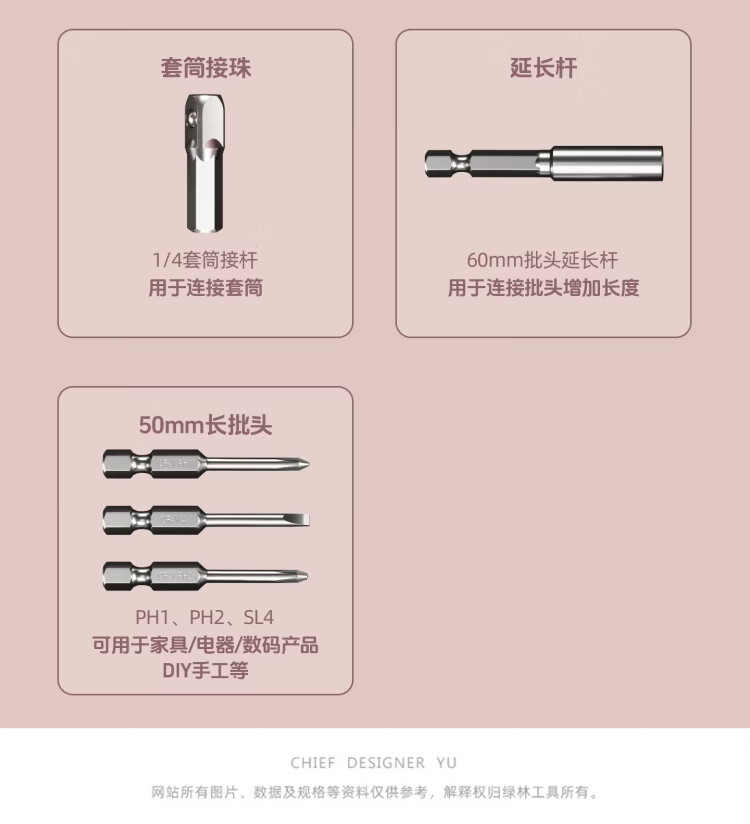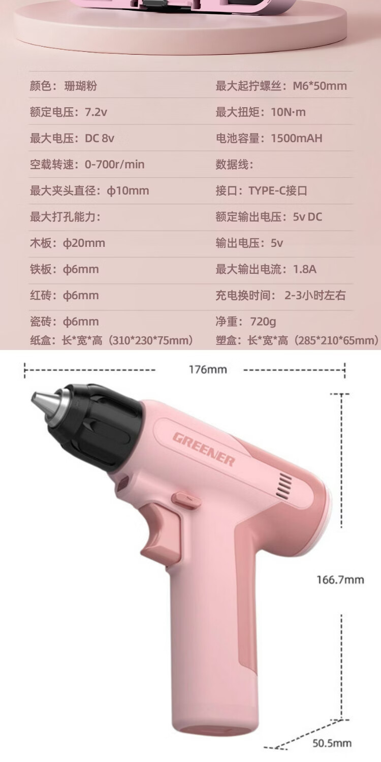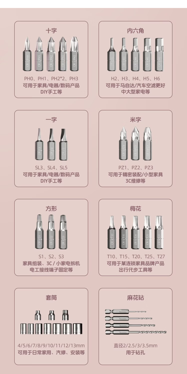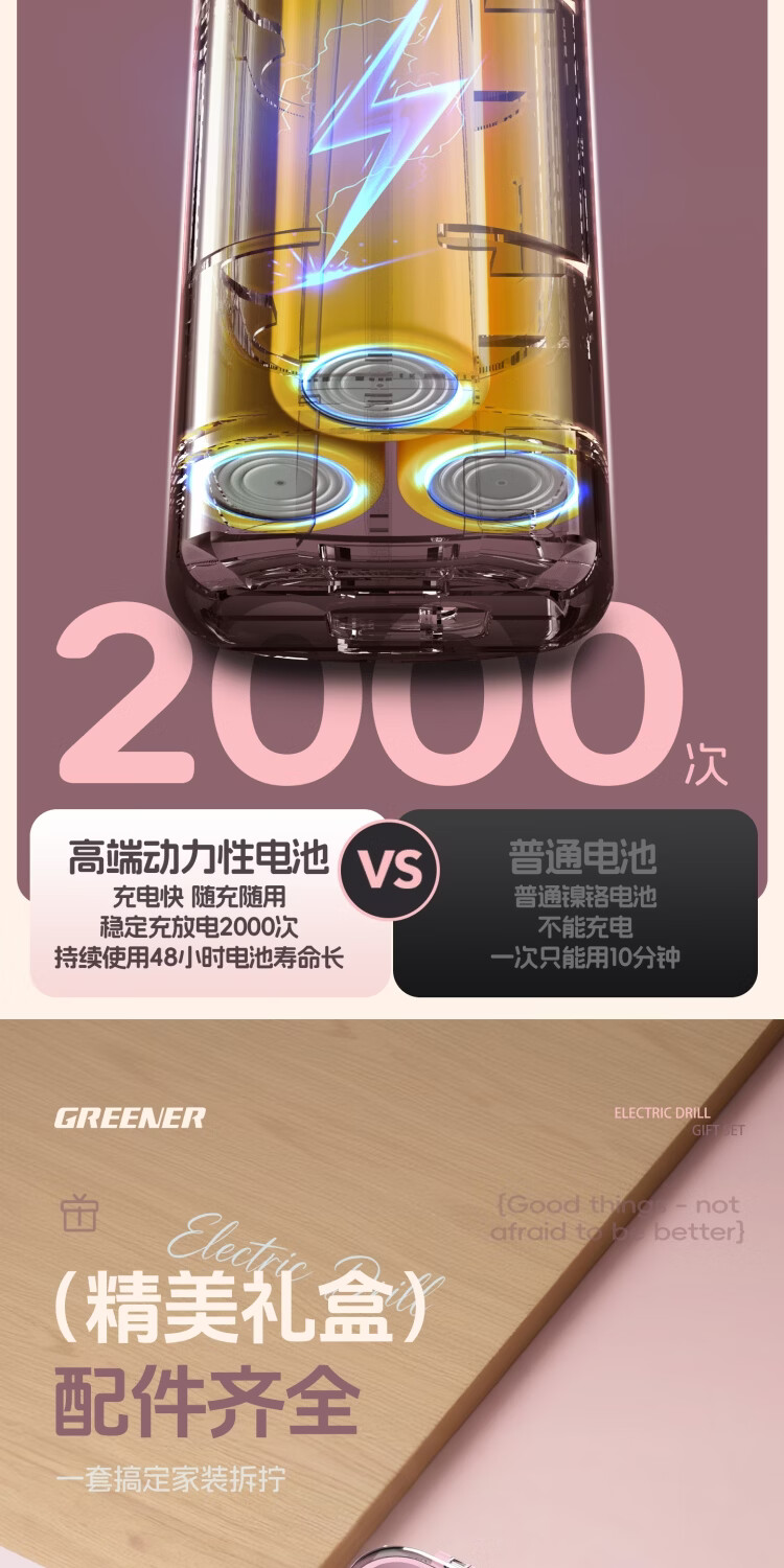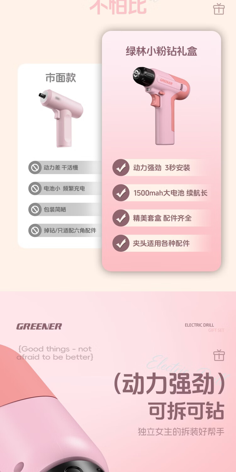 绿林电钻小粉钻手电钻女生粉家用小型手枪钻锂电充电多功能拧螺丝 44件粉钻礼盒-女神专属&搞定拆装