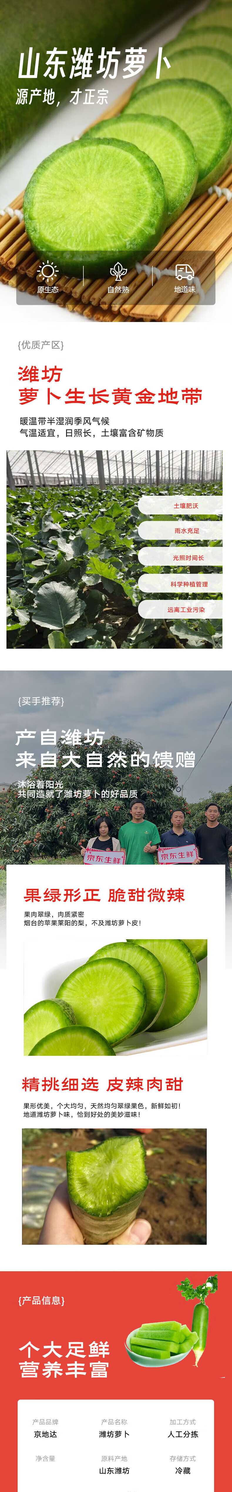 京地达山东潍县萝卜 净重3斤 中果 水果萝卜青萝卜蔬菜源头直发包邮
