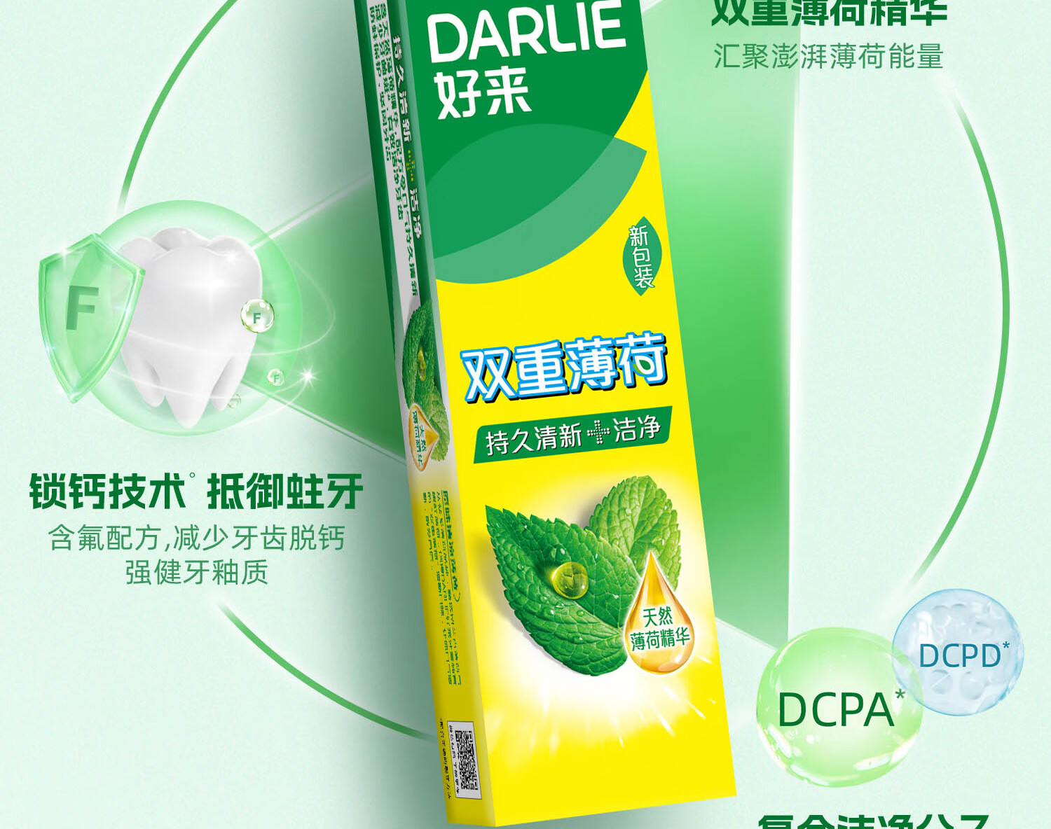 好来(DARLIE)原黑人双重薄荷清新口气护龈牙膏固齿含氟成人 双重薄荷90g*5