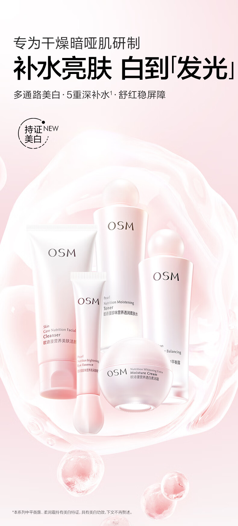 欧诗漫(OSM)营养美肤洁面爽肤水乳眼霜面霜5件套护肤品补水提亮新年礼物