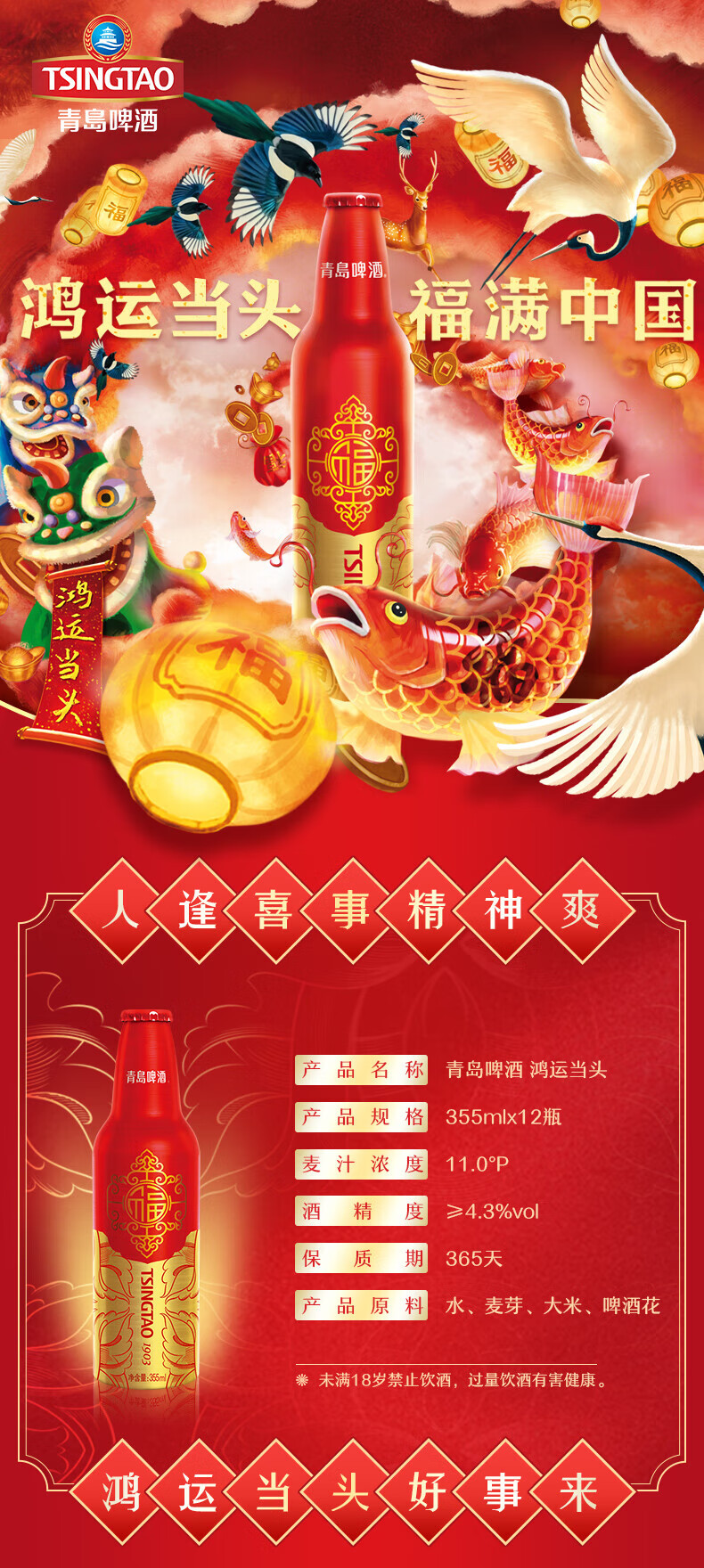 青岛啤酒(TsingTao) 鸿运当头喜庆佳节送礼祥瑞年货 355mL 12瓶 常规版