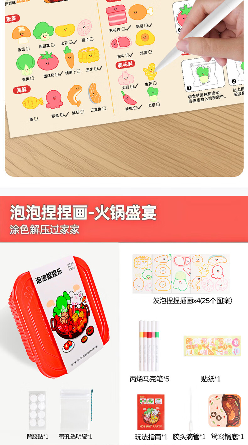 丹米琦火锅泡泡捏捏画儿童手工diy厨房玩具3-6岁女孩男孩生日礼物