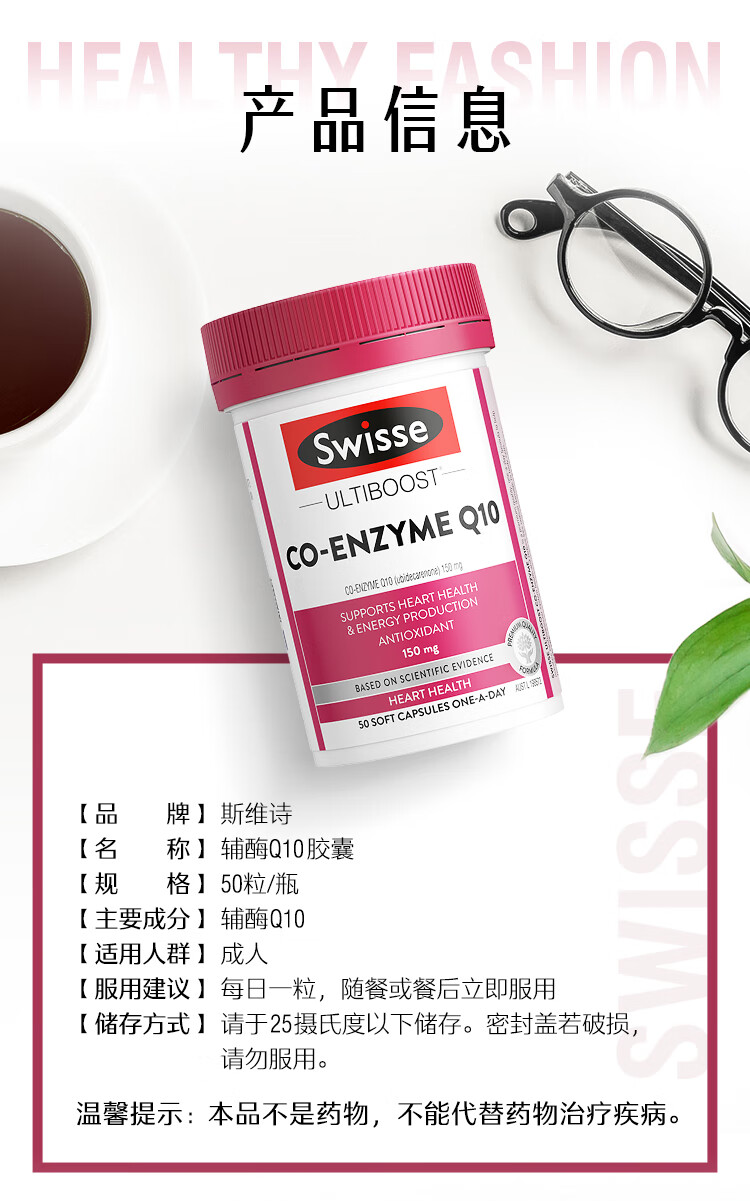 Swisse斯维诗 辅酶Q10胶囊150mg 强健心肌保护心脏心脑血管 50粒*3瓶