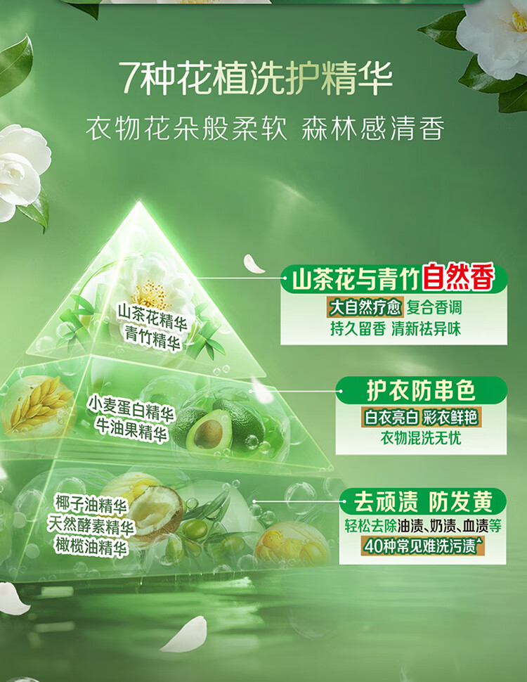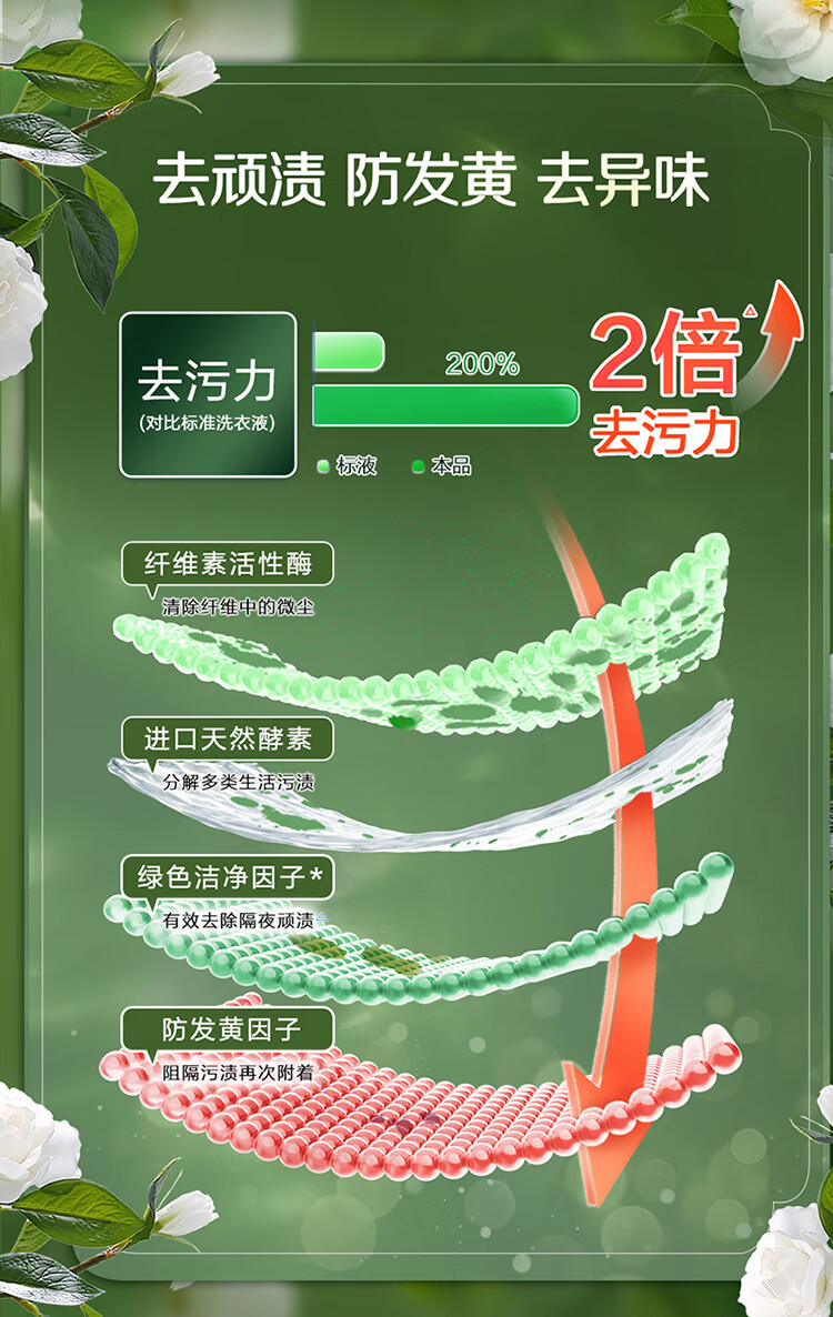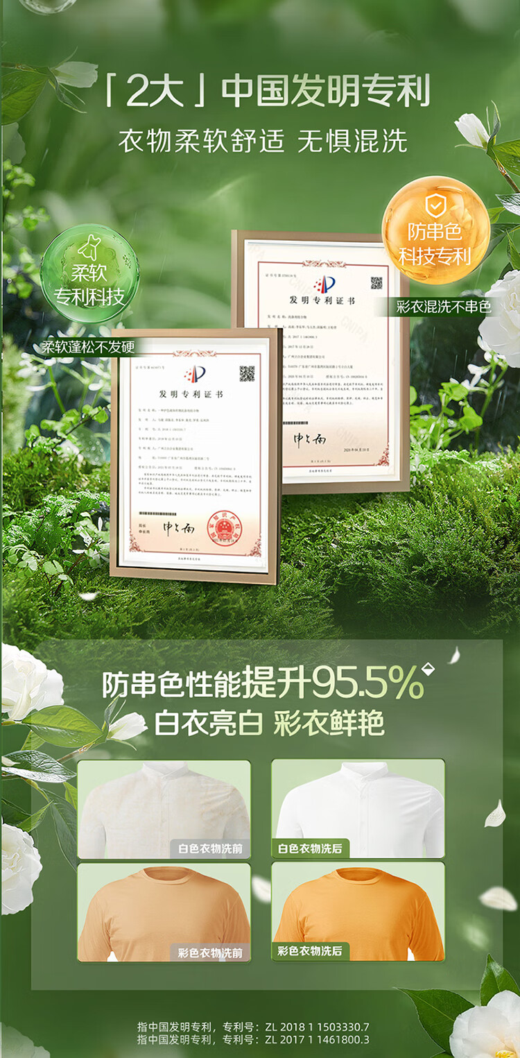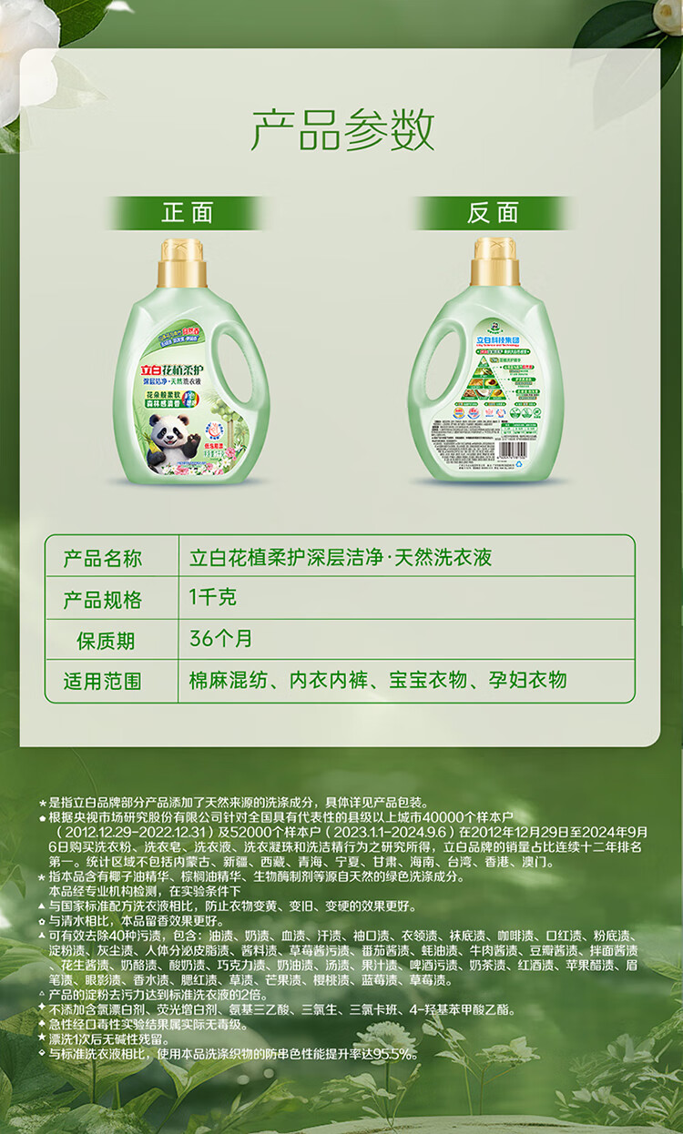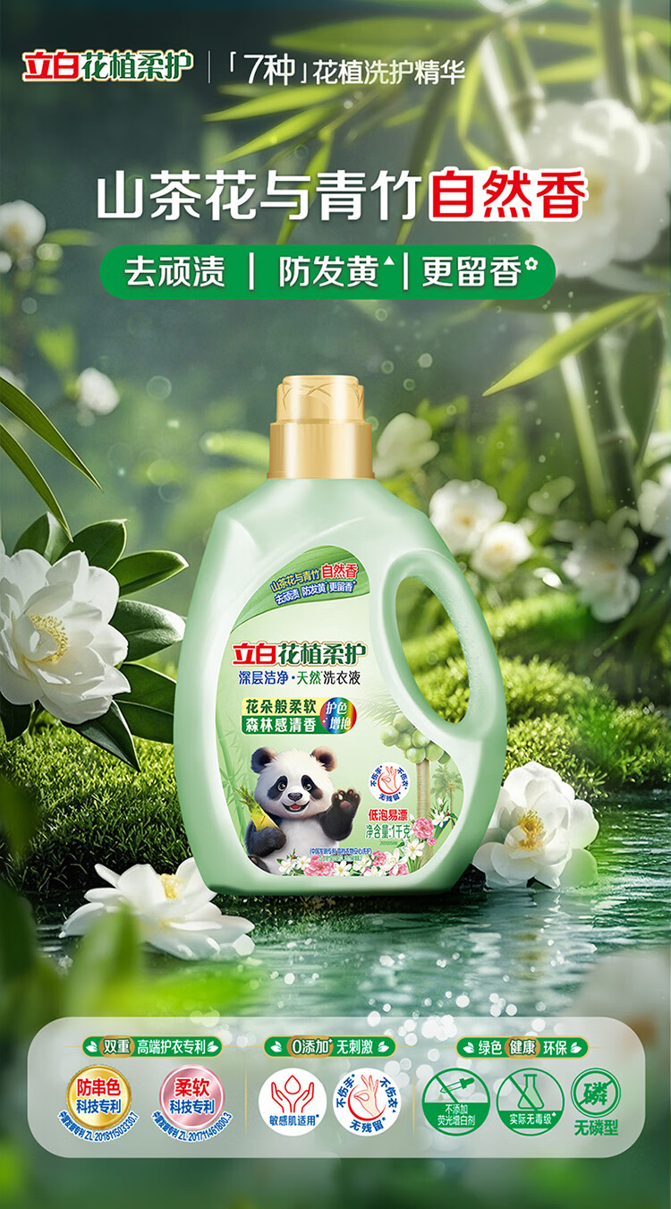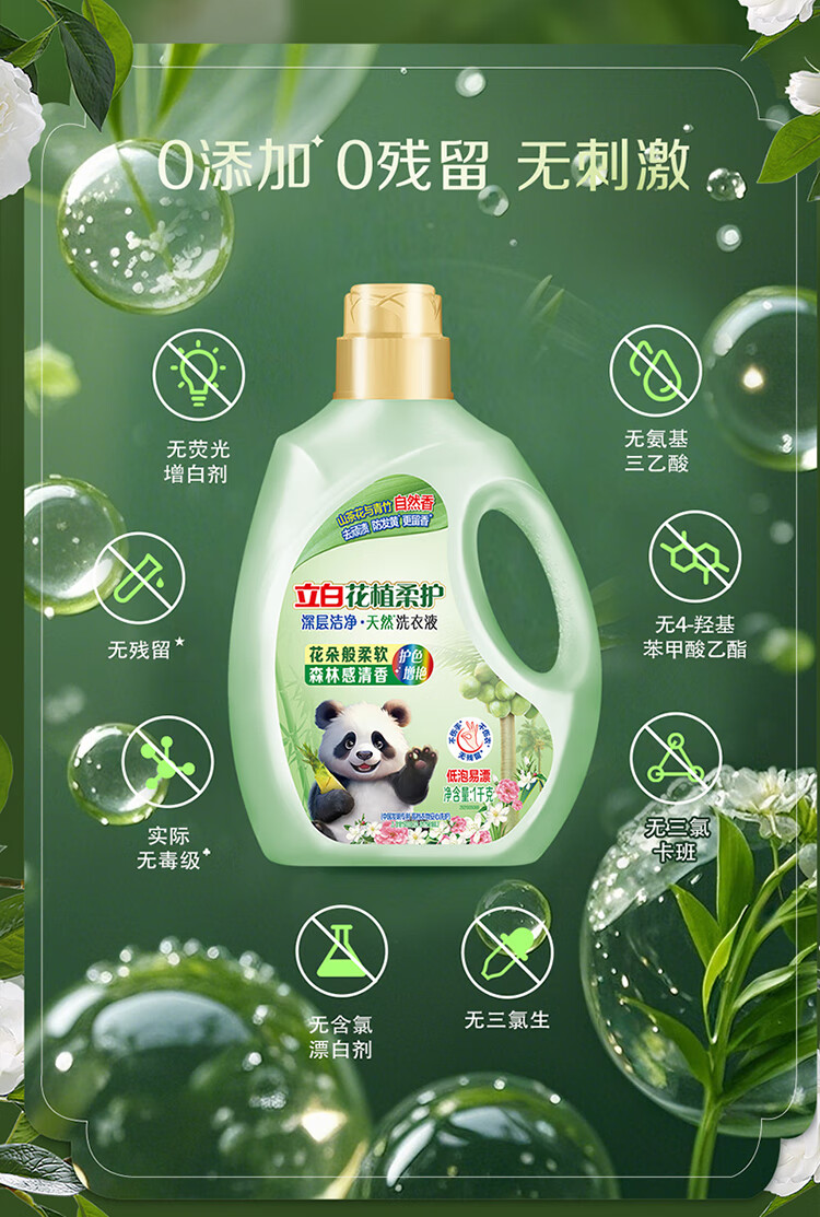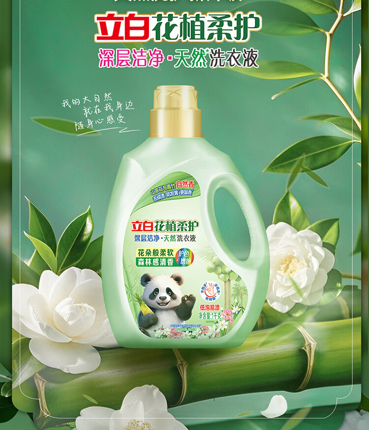 立白花植柔护洗衣液2斤装 护衣防串色防发黄持久留香 深层洁净去污渍