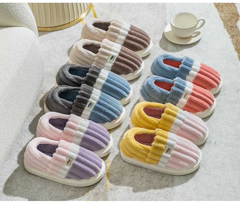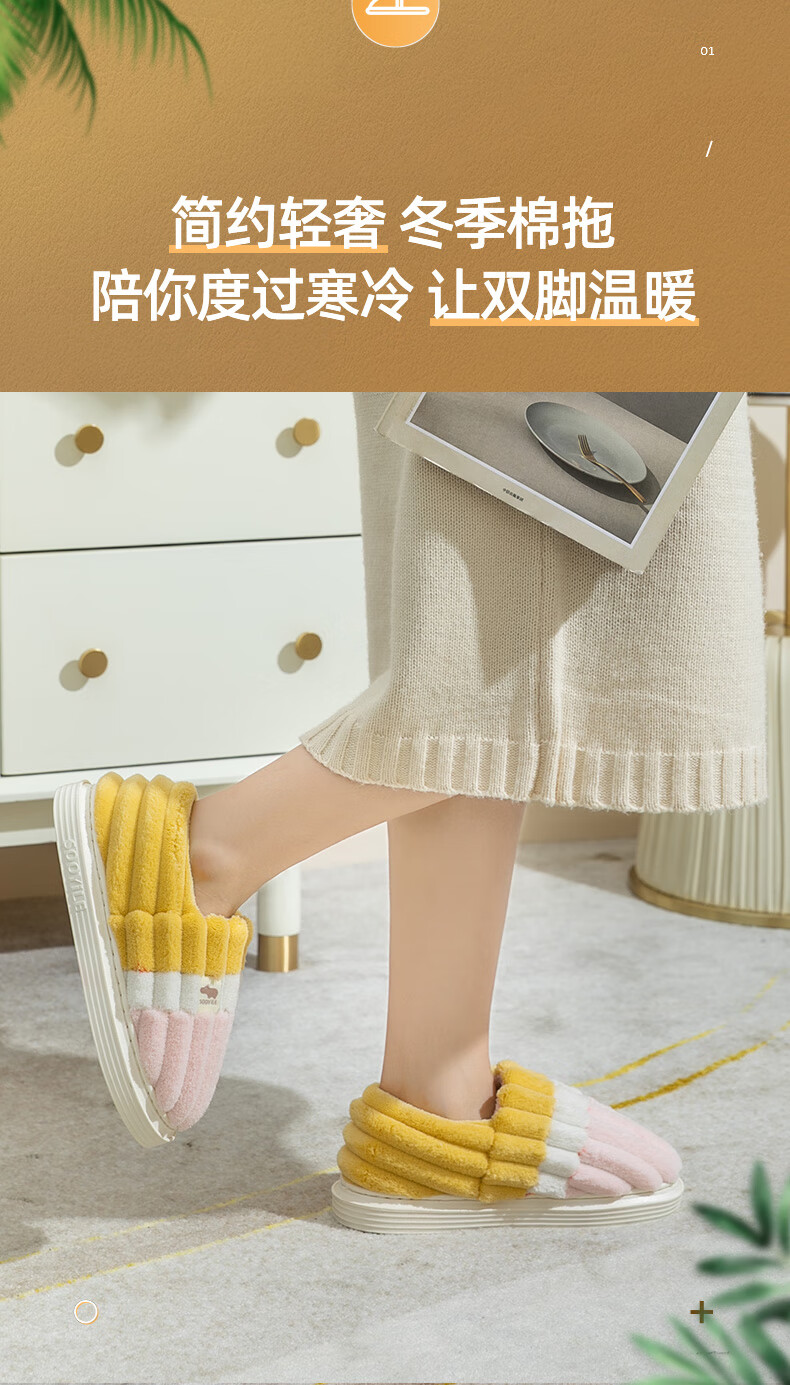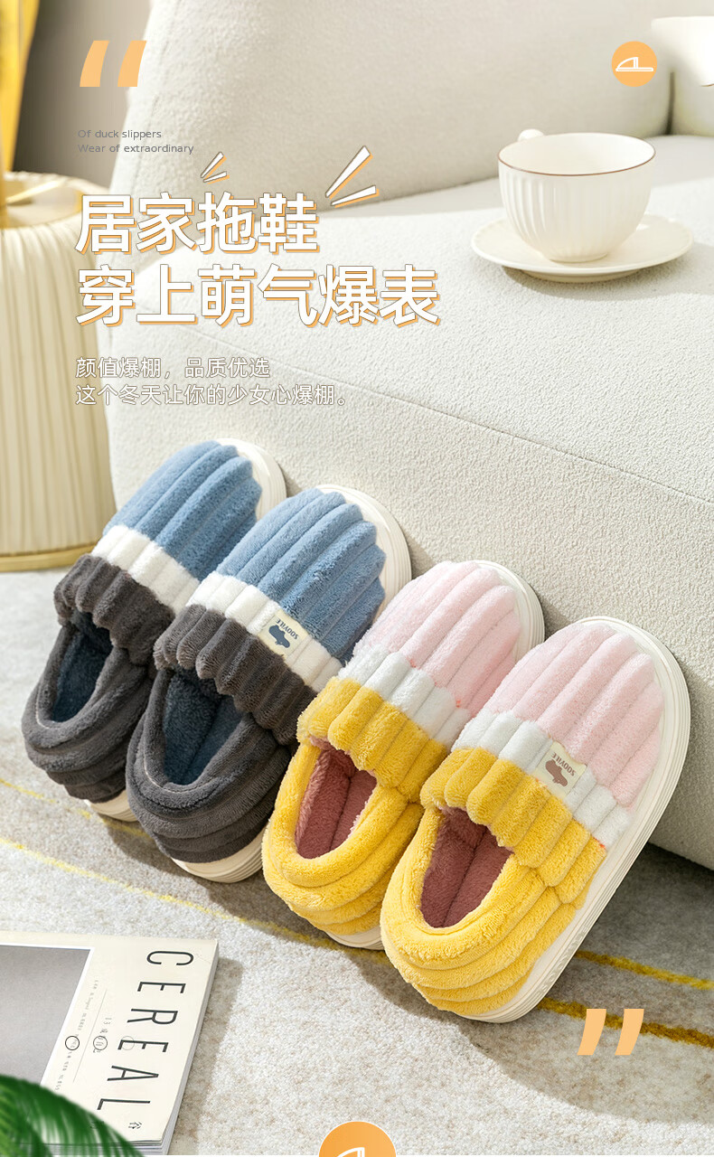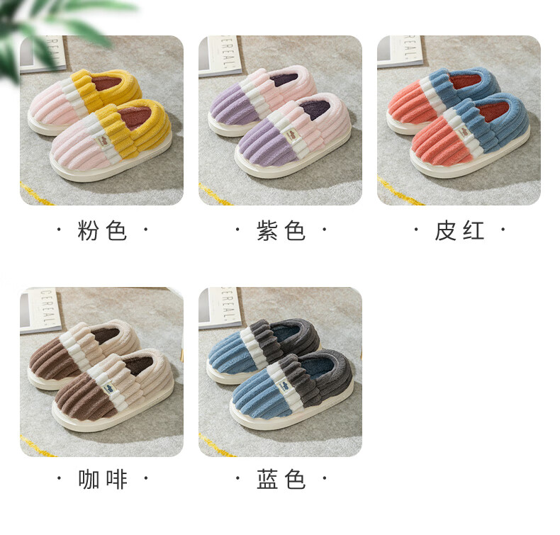 惠夫人棉拖鞋女冬季保暖防滑室内家用加绒棉鞋男加厚情侣款拖鞋冬天 简约甜筒 粉红 38-39 (适合37-38码穿)