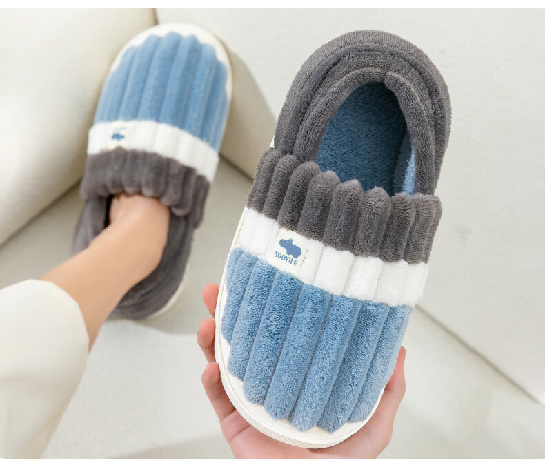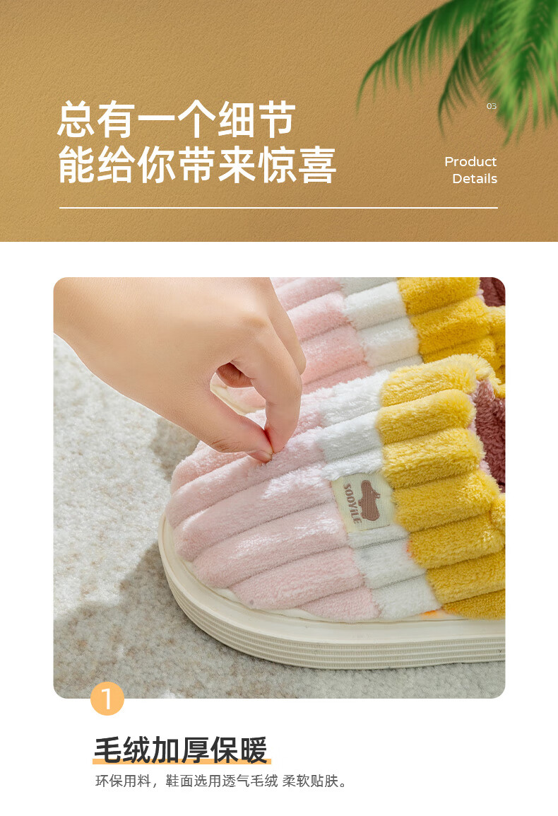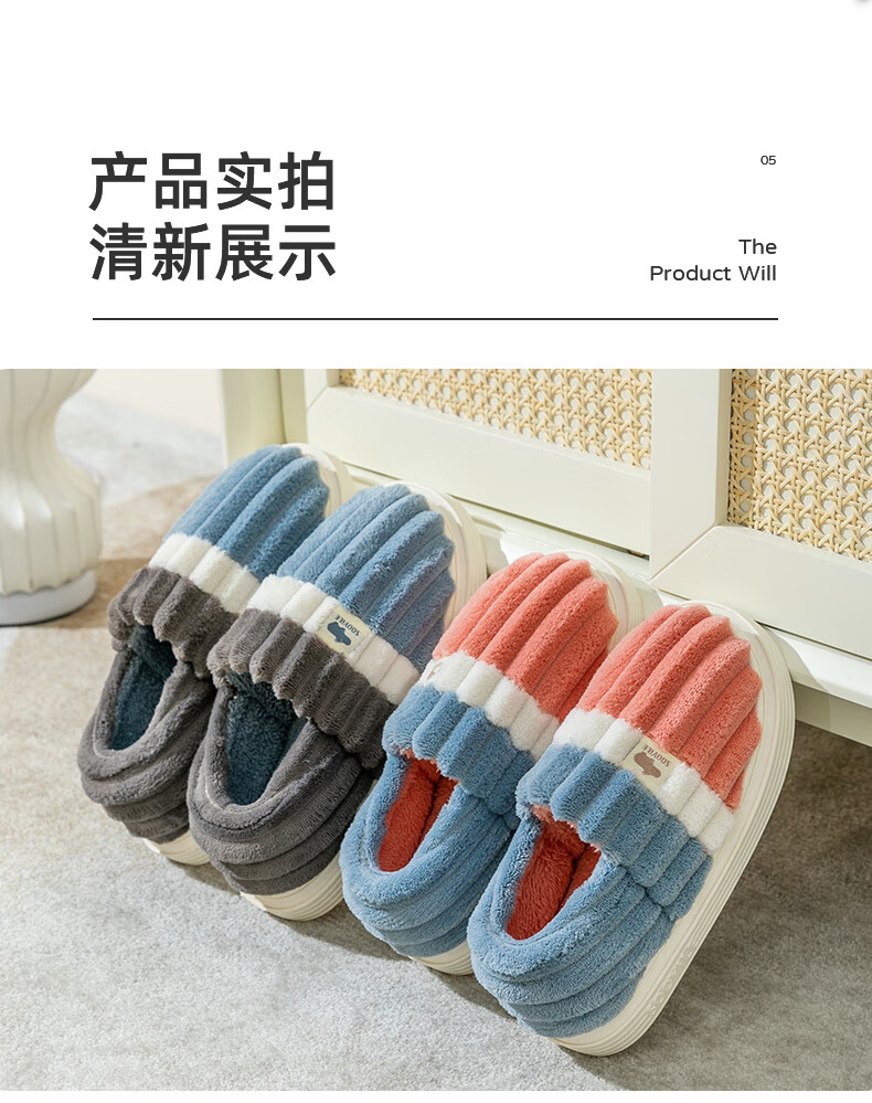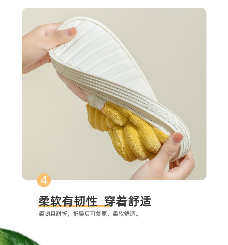 惠夫人棉拖鞋女冬季保暖防滑室内家用加绒棉鞋男加厚情侣款拖鞋冬天 简约甜筒 粉红 38-39 (适合37-38码穿)