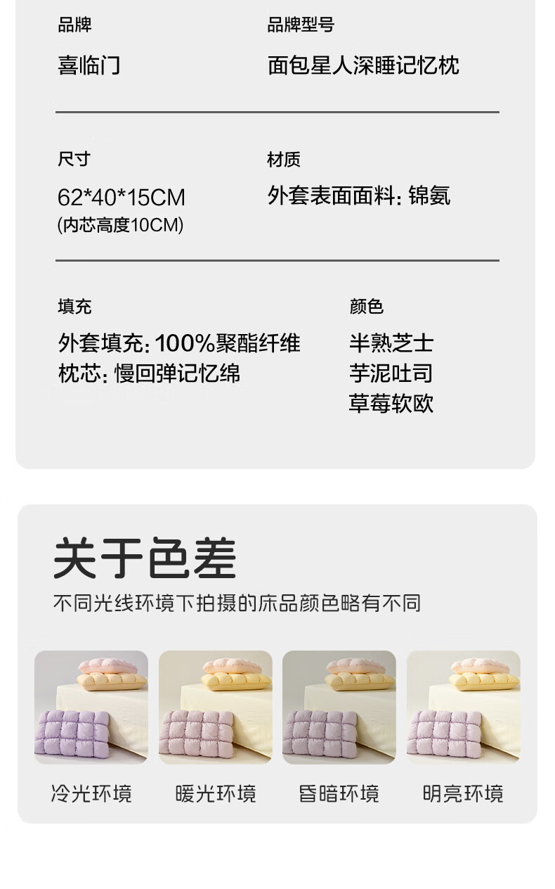 喜临门枕头颈椎枕芯睡眠慢回弹睡觉专用记忆棉双人枕 面包星人记忆枕 草莓软欧粉 A类 单只