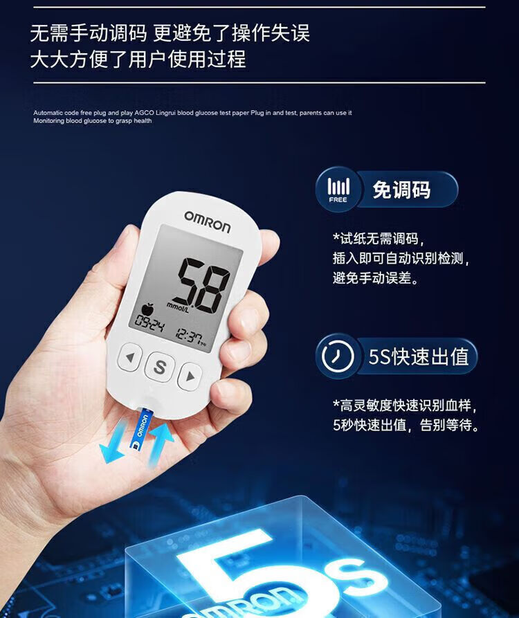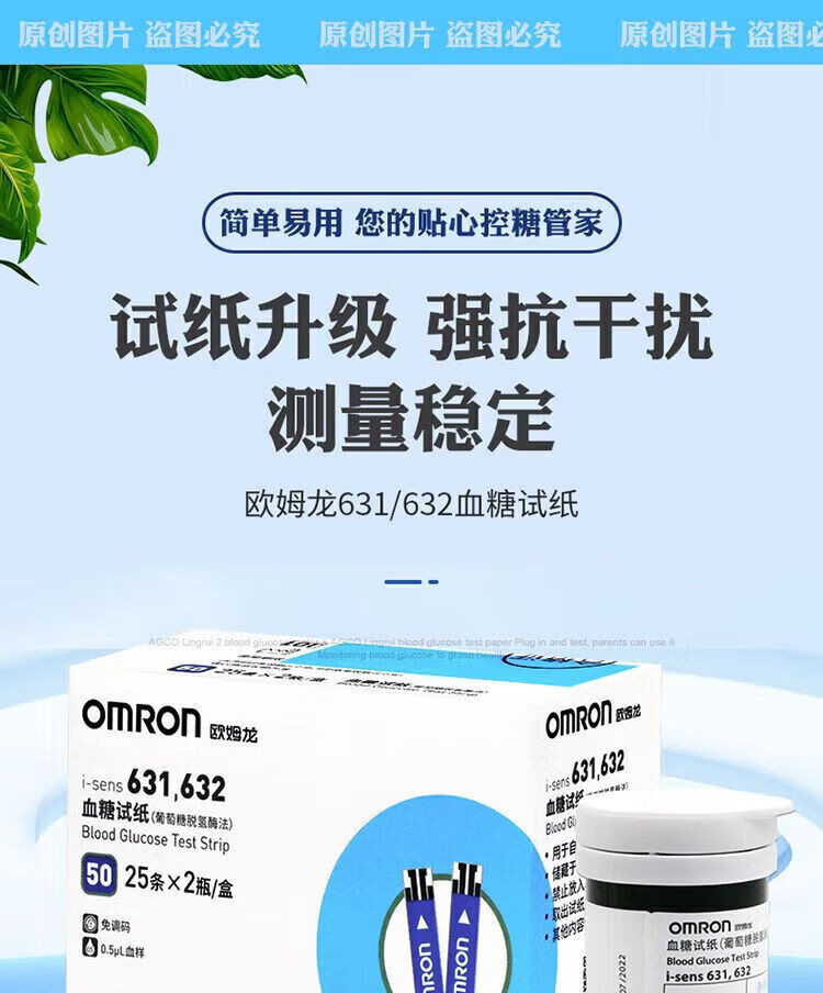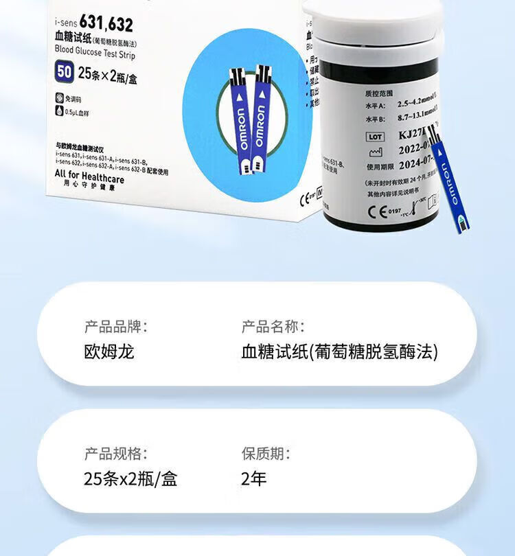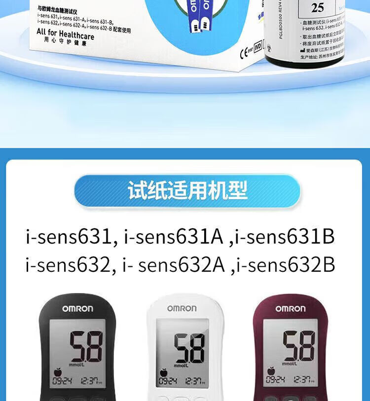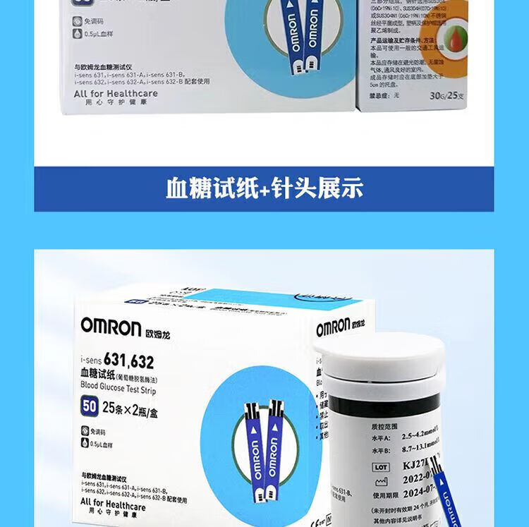 欧姆龙(OMRON)医院专用血糖仪高精准同款631632血糖试纸家用医用全自动精准血糖 25片试纸