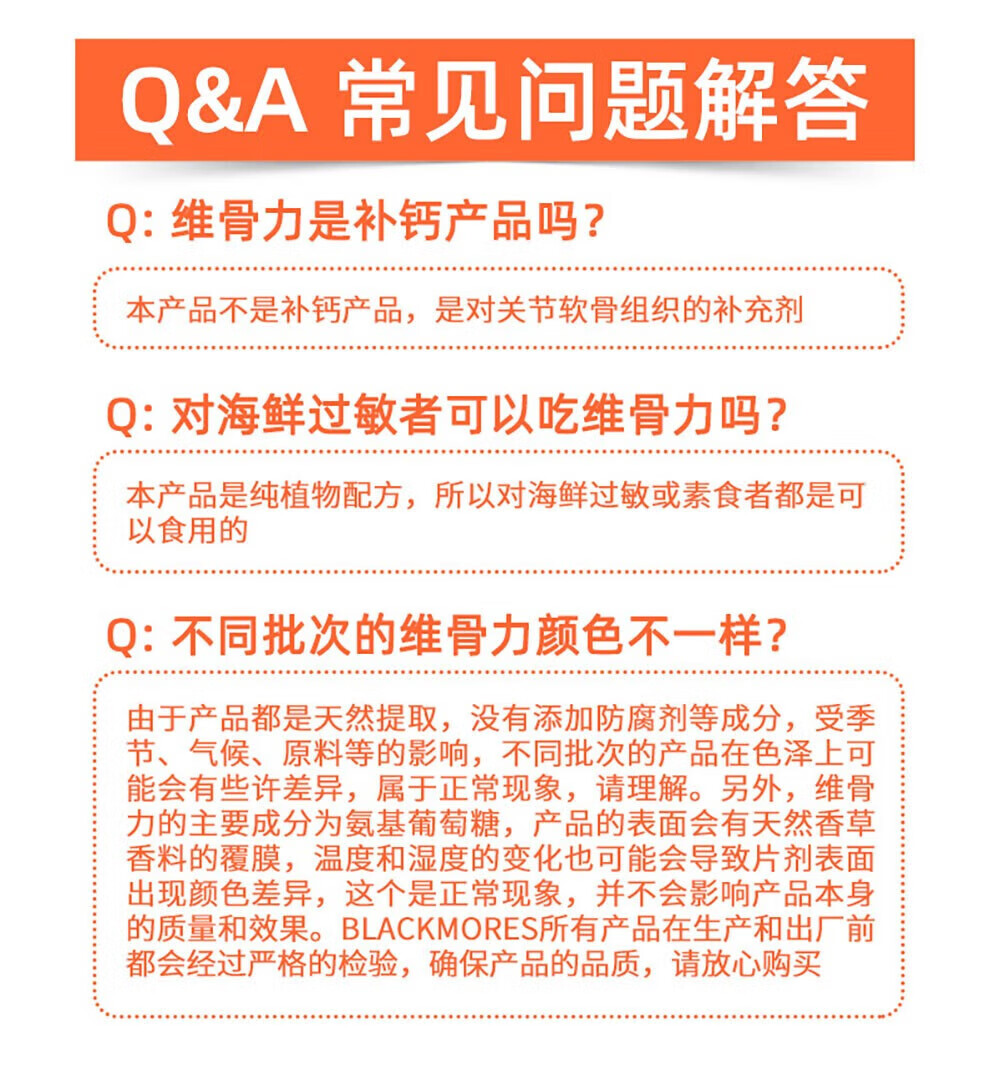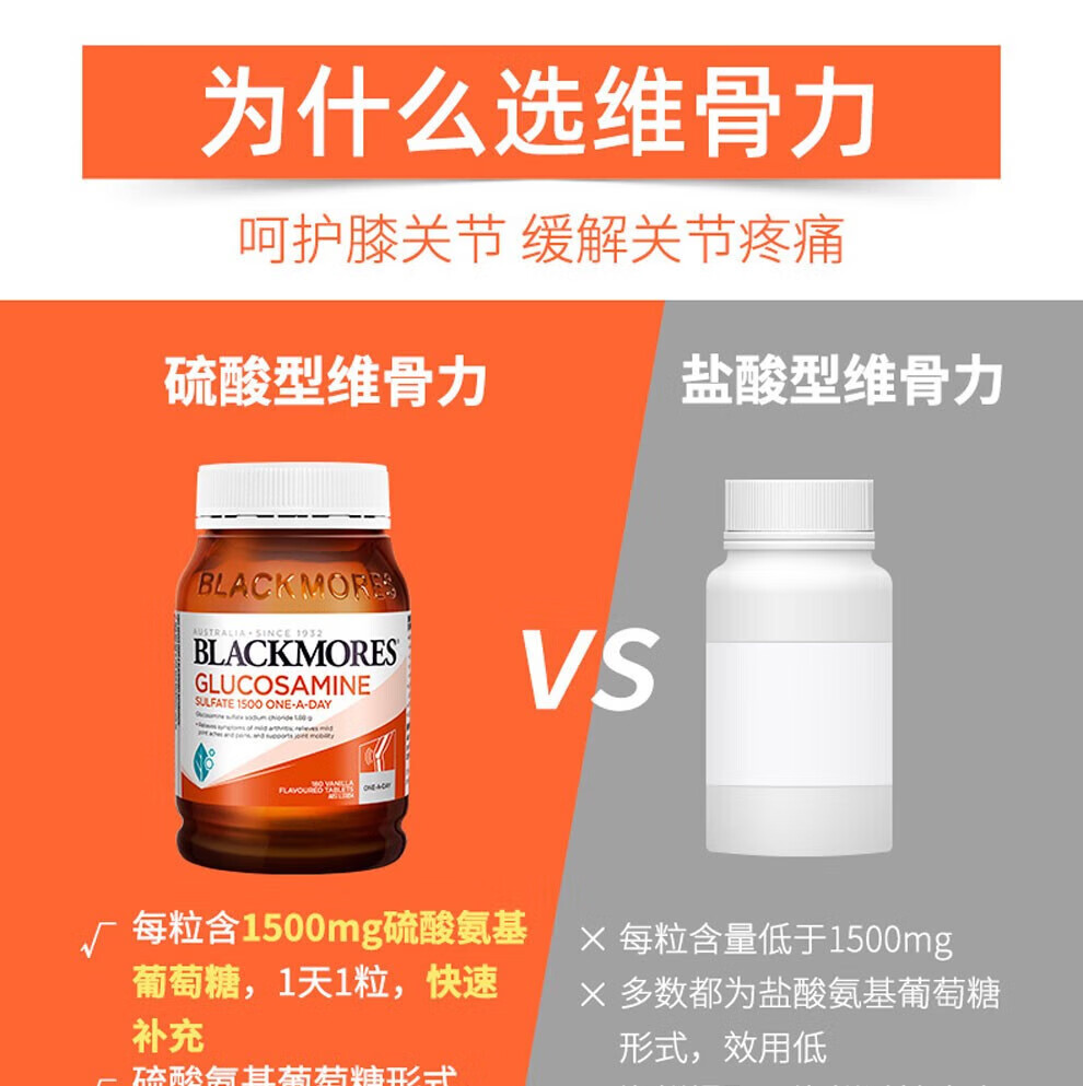 Blackmores维骨力高浓度硫酸氨糖片软骨素成人关节食品/有效期27年初 加强版维骨力 180粒*1瓶