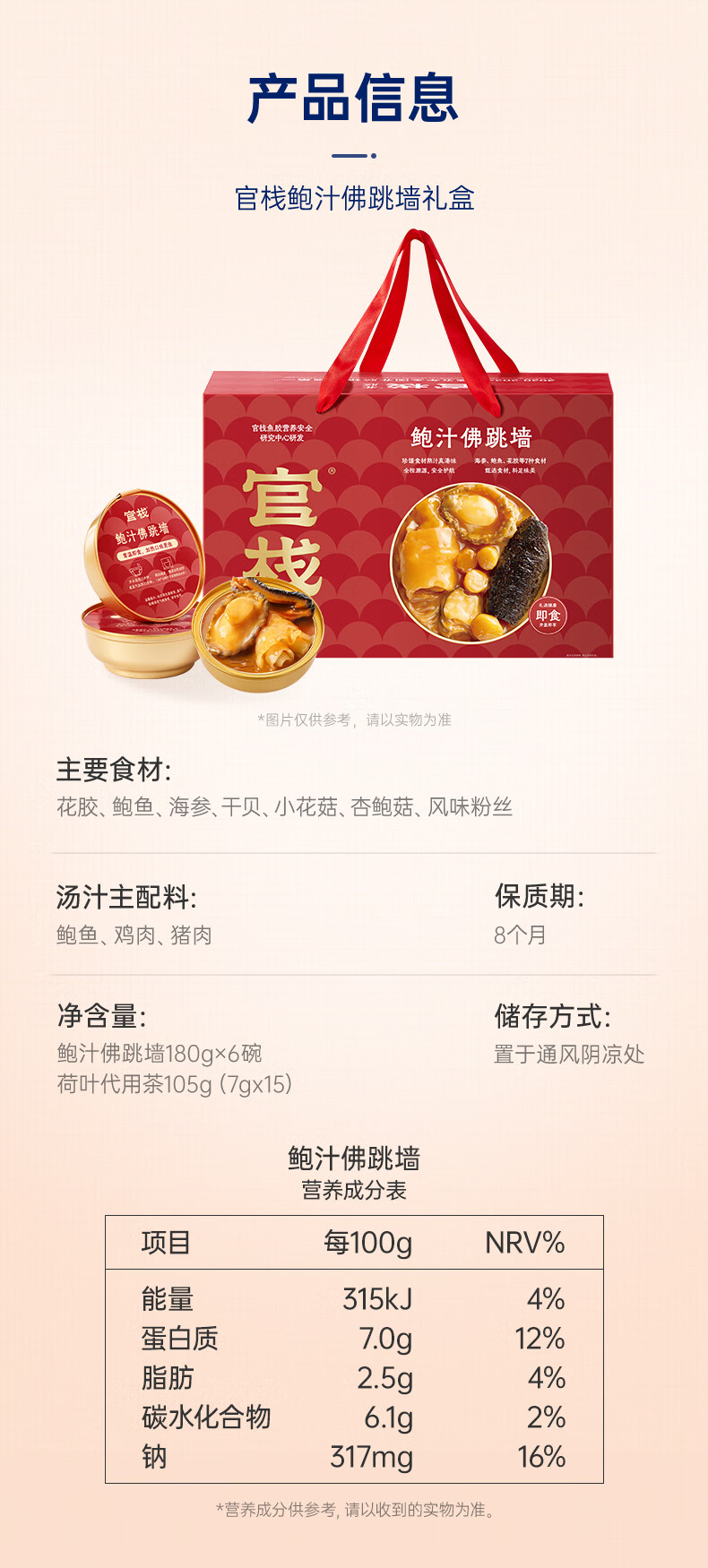 官栈【年货礼盒】 鲍鱼金汤花胶鸡 加热即食佛跳墙家庭聚餐滋补火锅 鲍汁佛跳墙 1.5kg*1盒