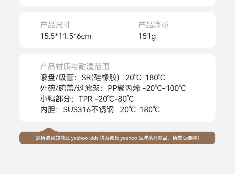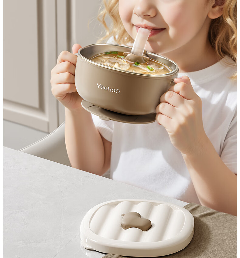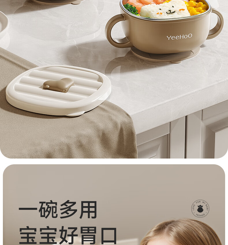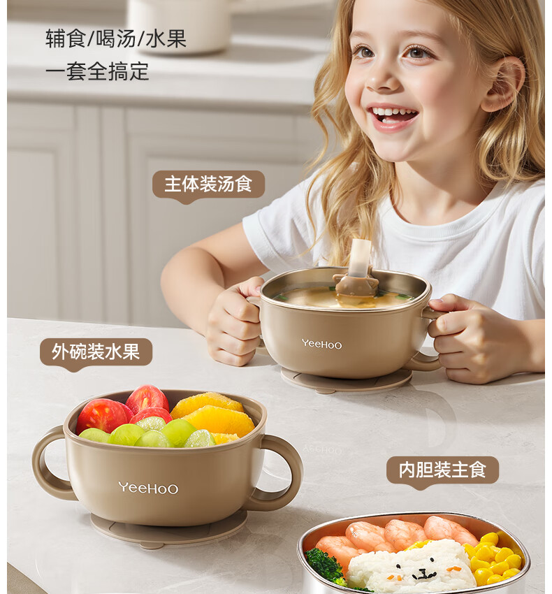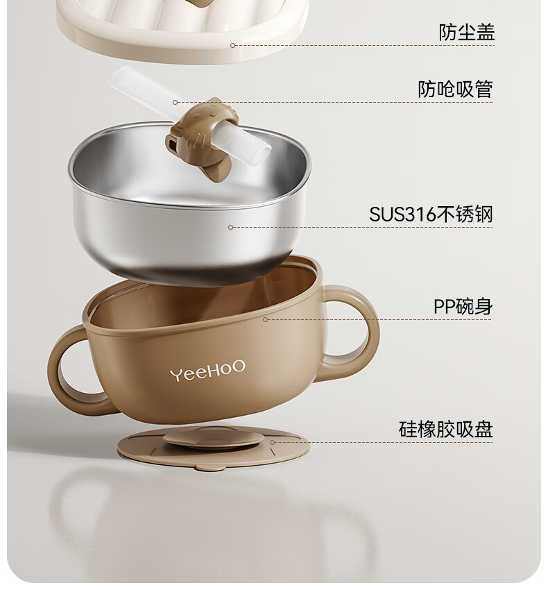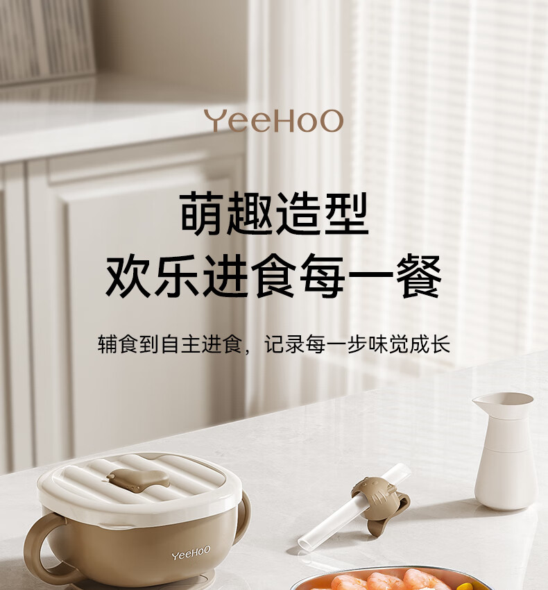 英氏(YEEHOO)宝宝吸管碗喝汤婴儿专用辅食碗吸盘碗三合一儿童吃饭餐具
