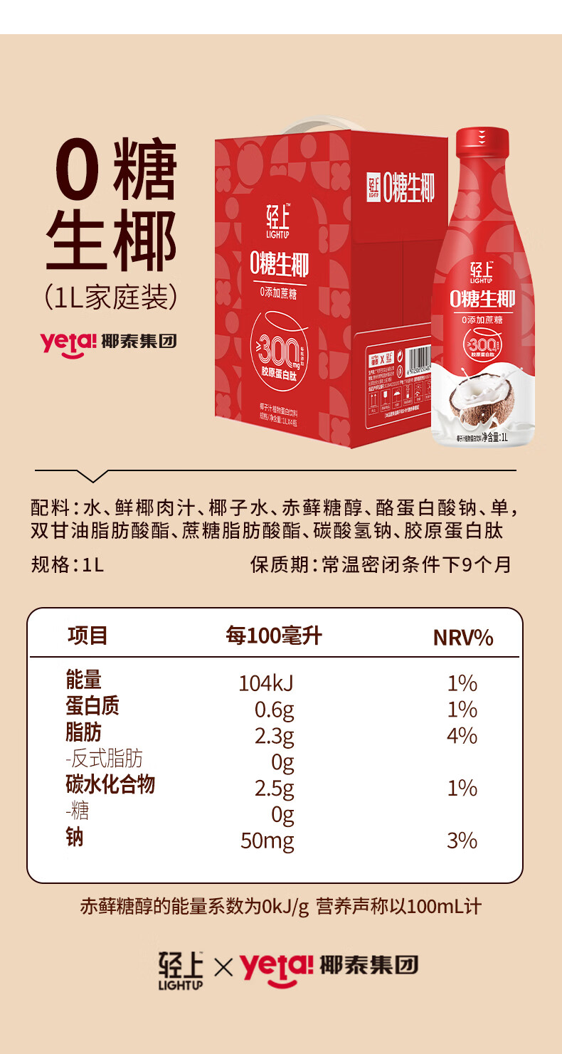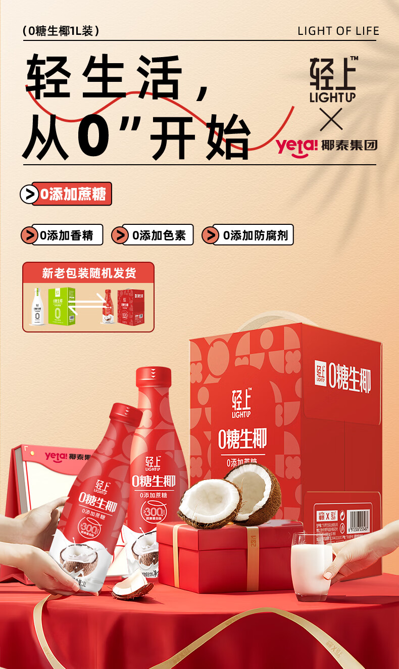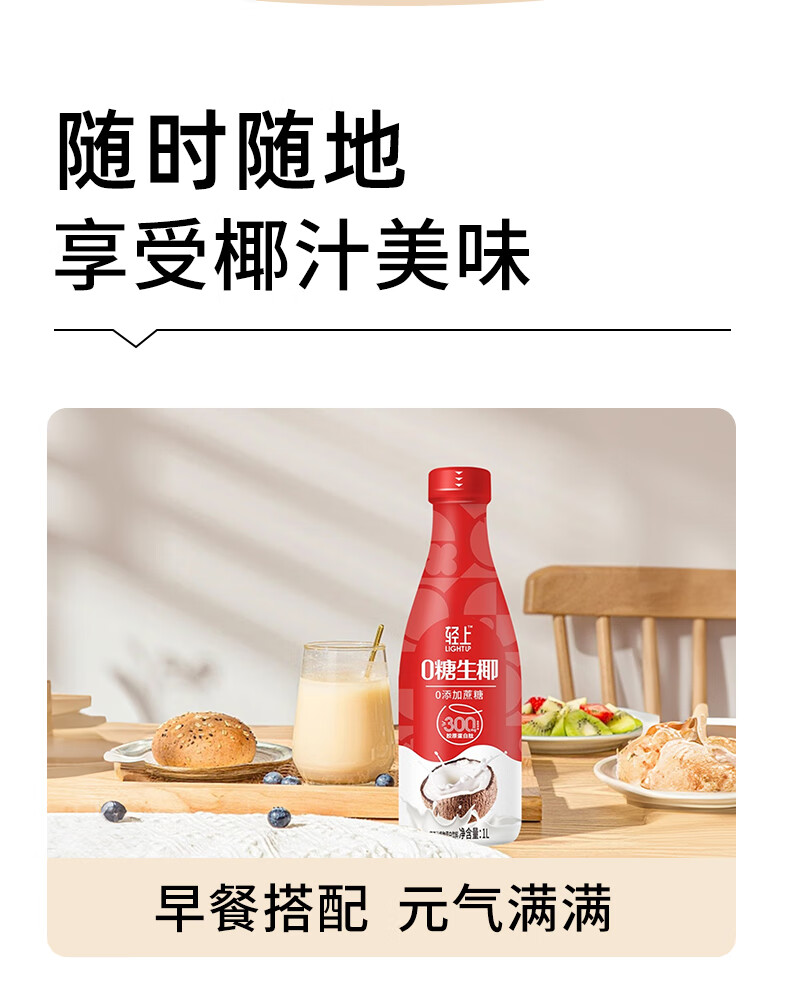 轻上【年货礼盒】轻上0糖生椰椰子汁椰汁饮料椰奶早餐送礼 0糖生椰原味220ml*10瓶