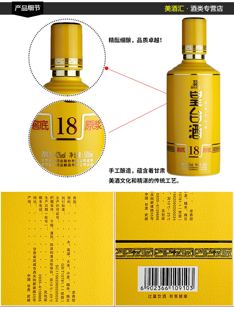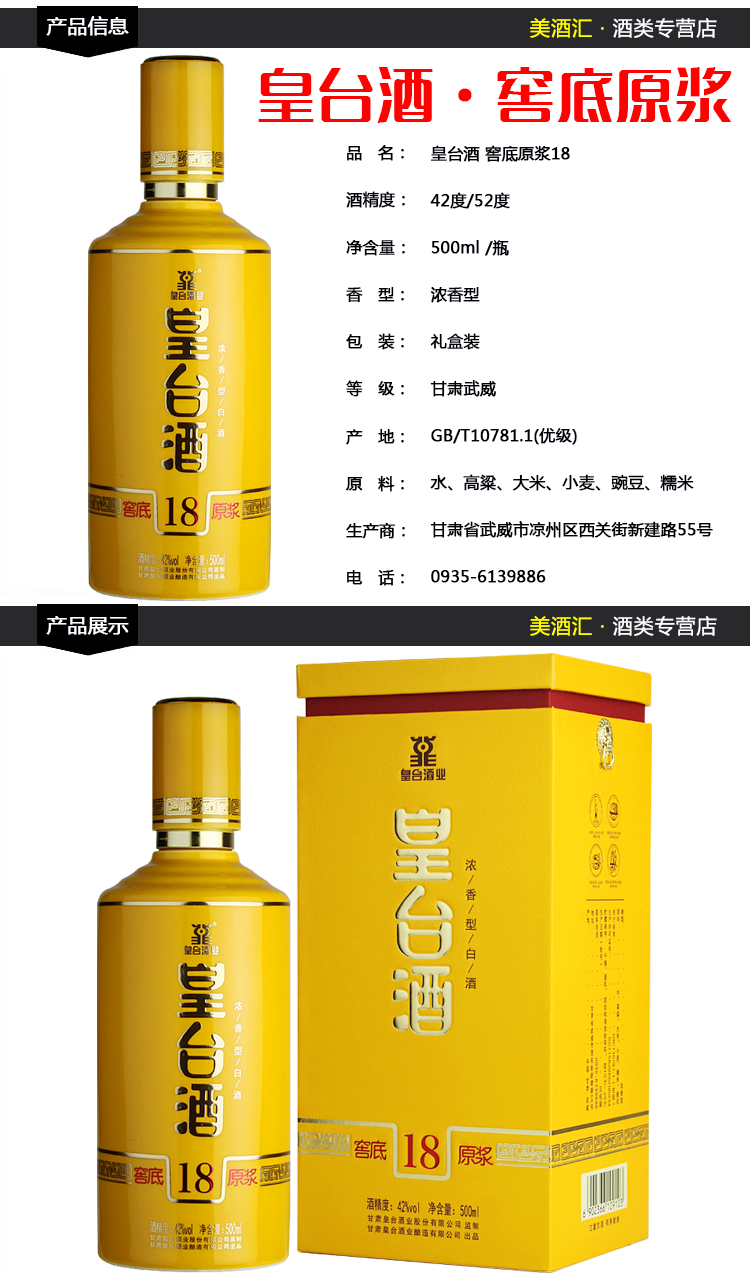 皇台酒专营店 甘肃皇台酒窖底原浆18年浓香型白酒高度纯粮食酒礼盒装 52度 500mL 1瓶 【送礼品1份】