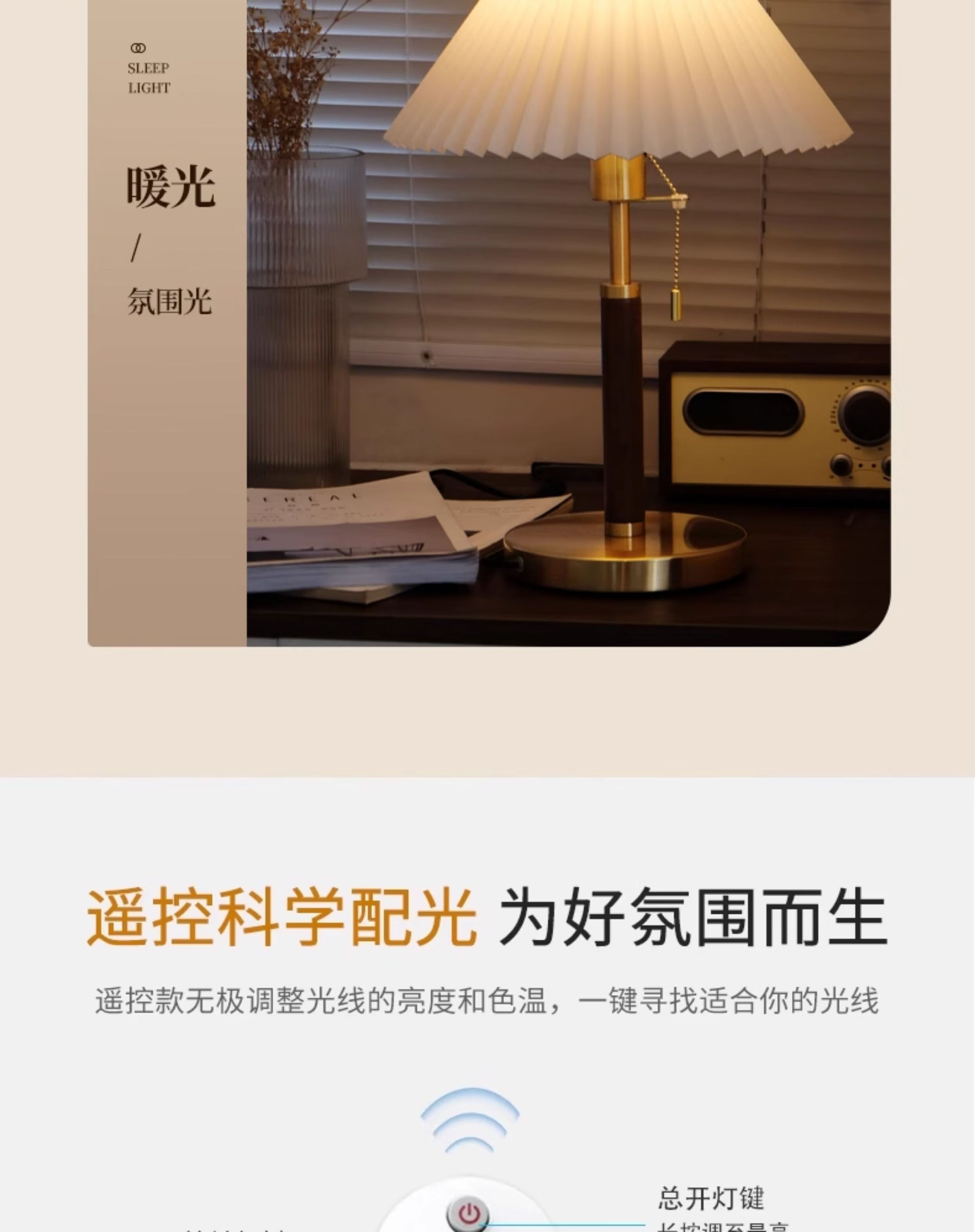 房间台灯床头灯现代高级感客厅书房装饰复古氛围小夜灯 拉链+按扭双开关 实木台灯 全光谱-遥控调亮度及色温-12W