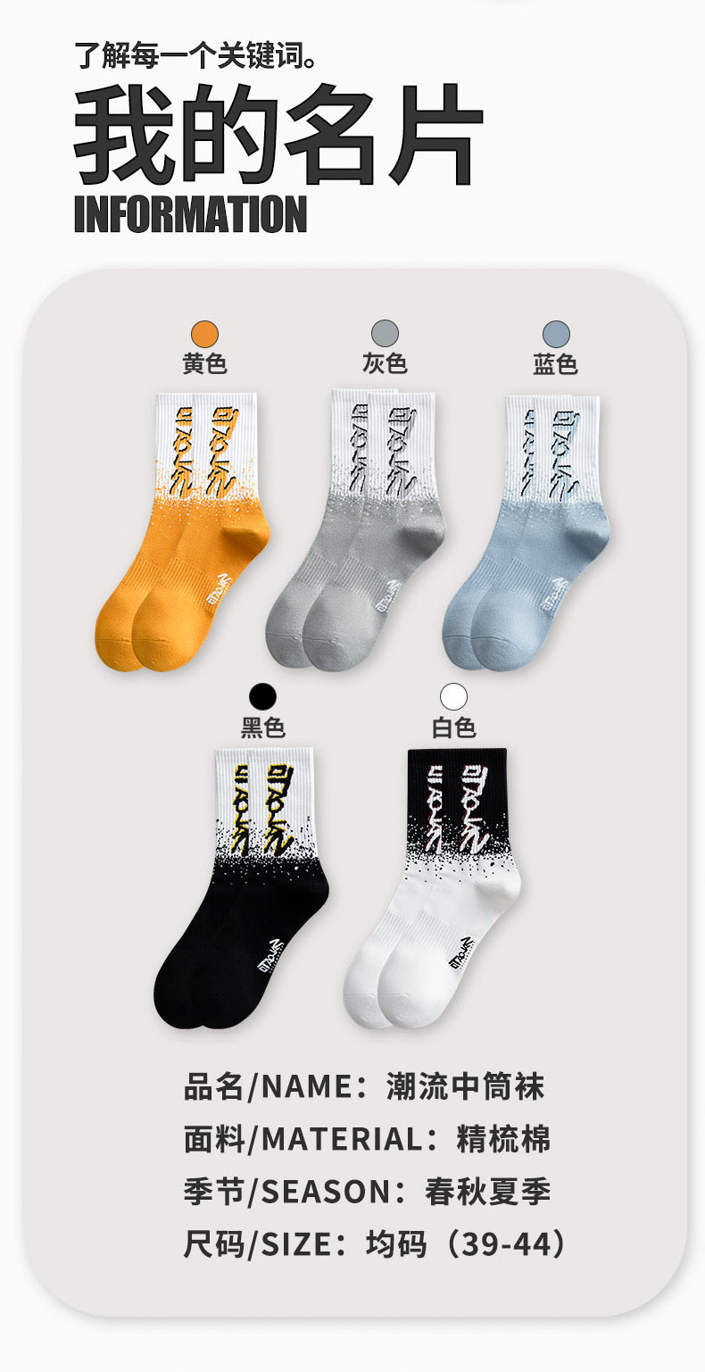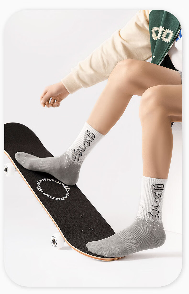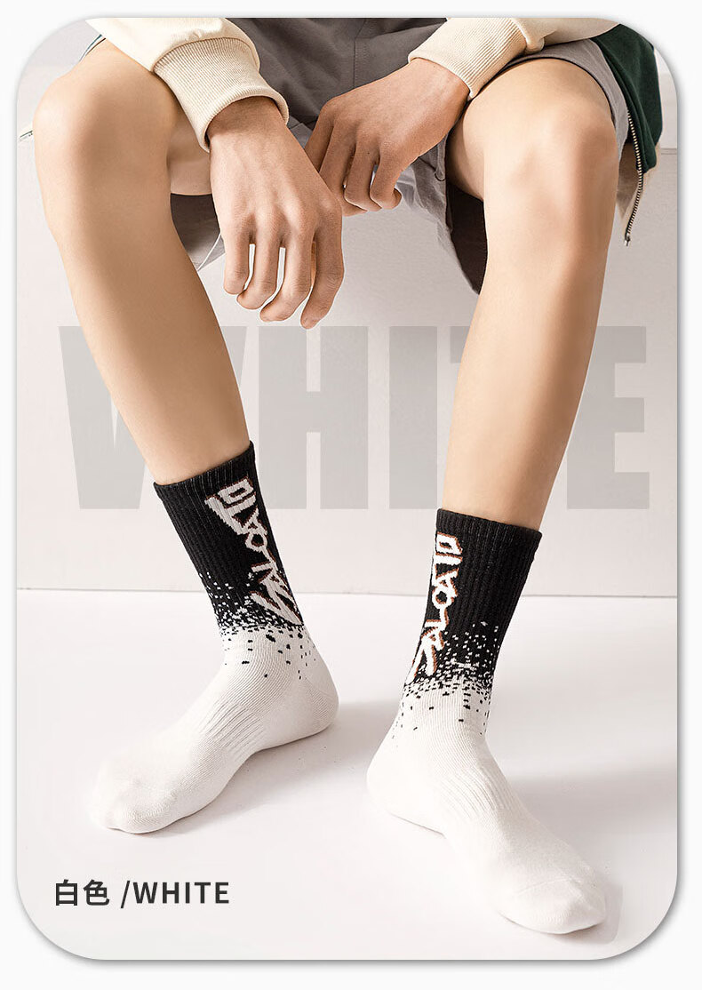 莎兰朵袜子男士长袜纯棉春秋季学生高腰篮球袜运动防臭全棉长筒潮袜秋款 2204长袜-混色 5双 均码