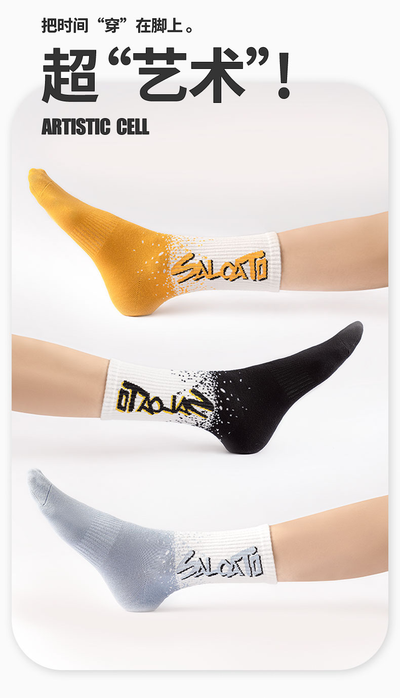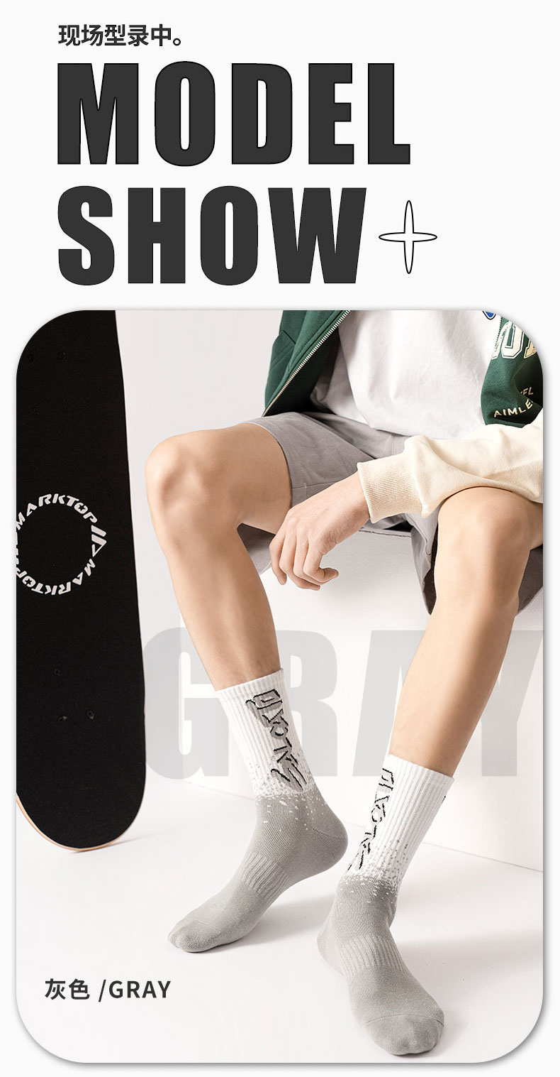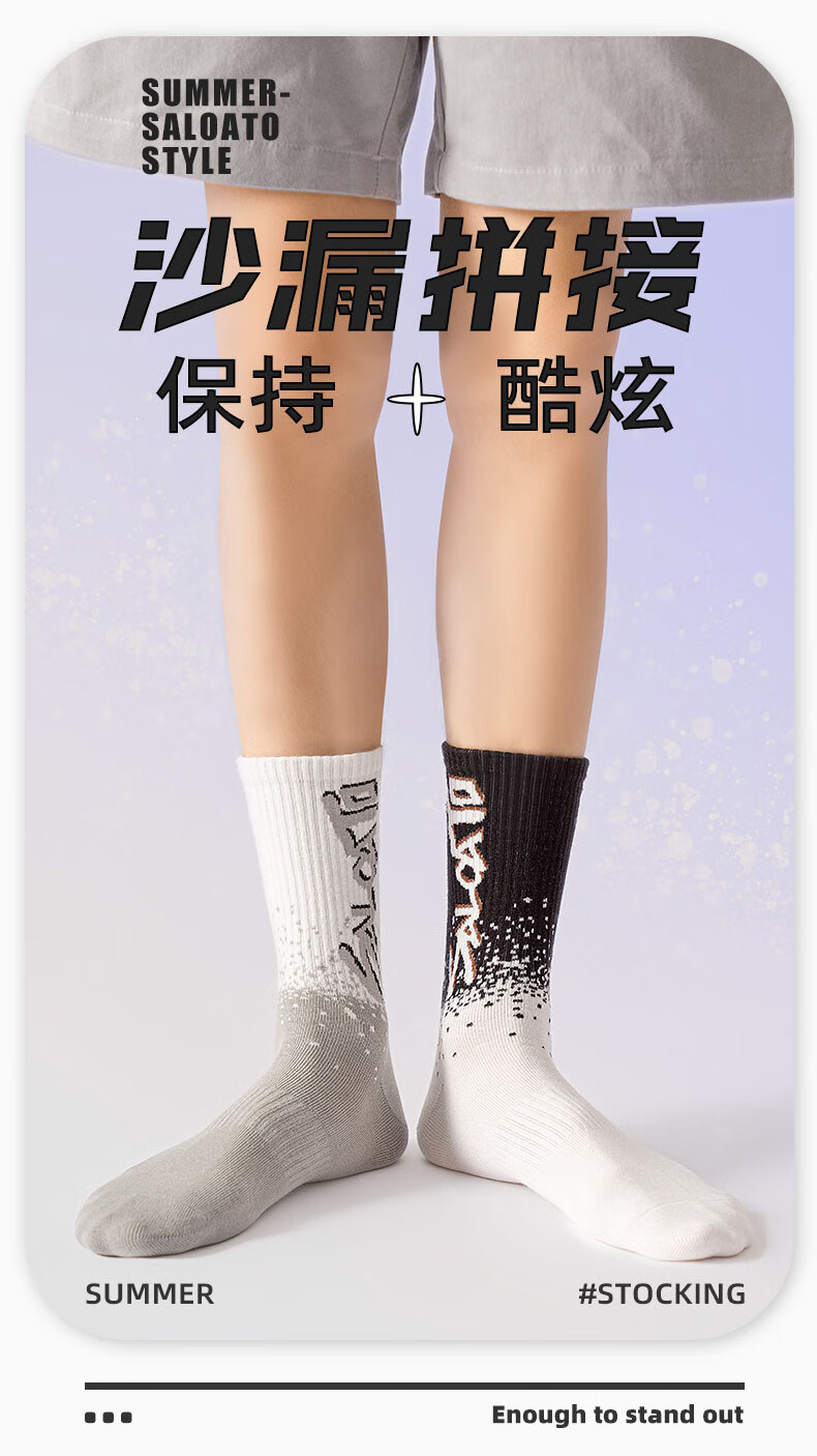 莎兰朵袜子男士长袜纯棉春秋季学生高腰篮球袜运动防臭全棉长筒潮袜秋款 2204长袜-混色 5双 均码