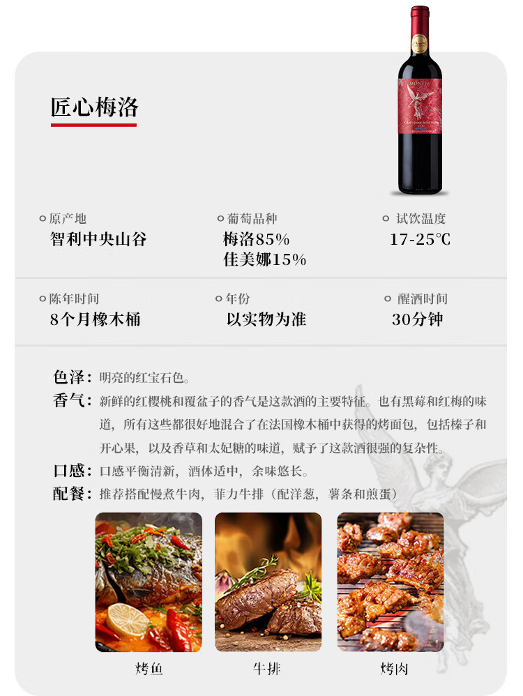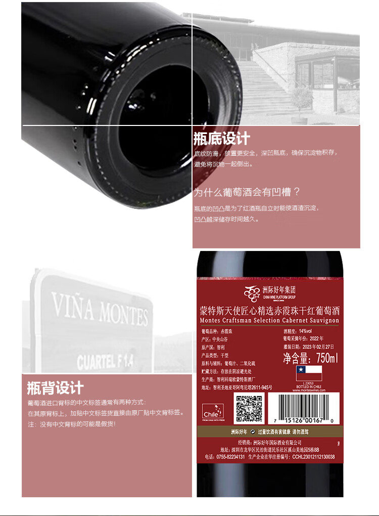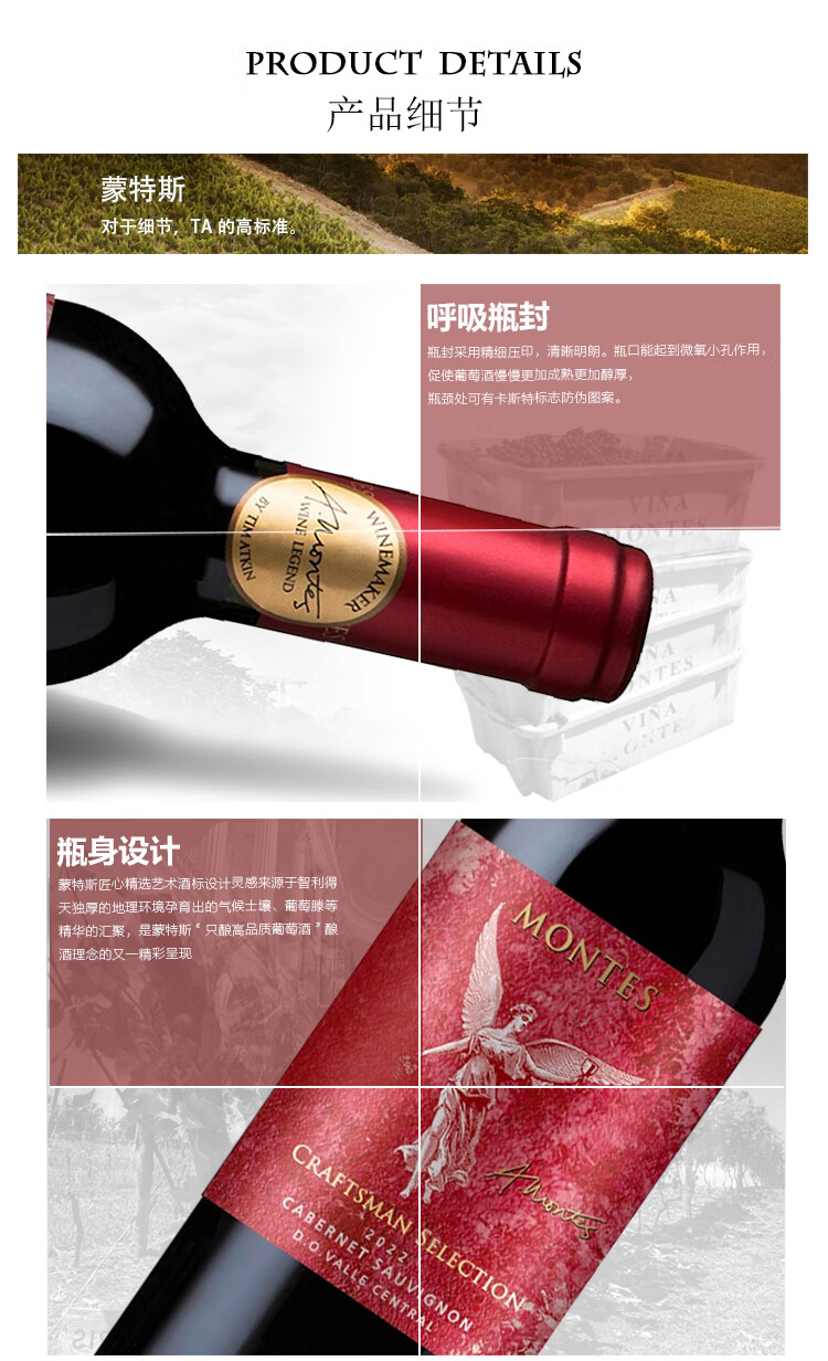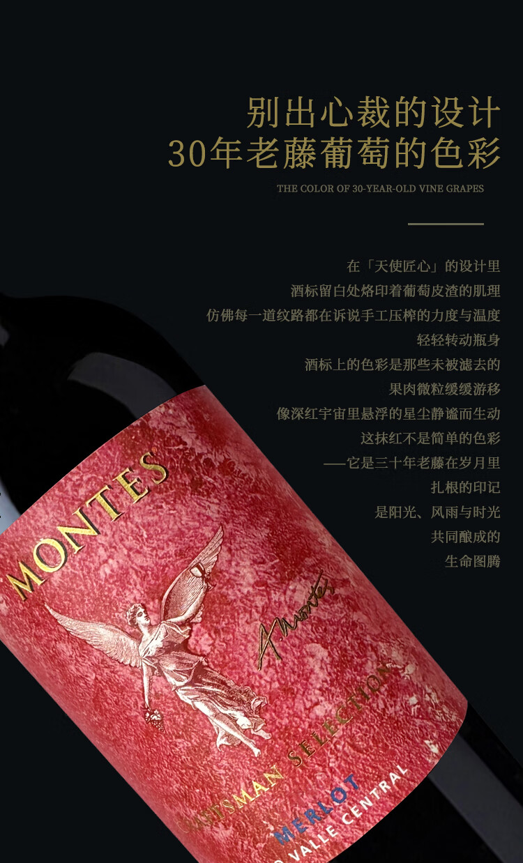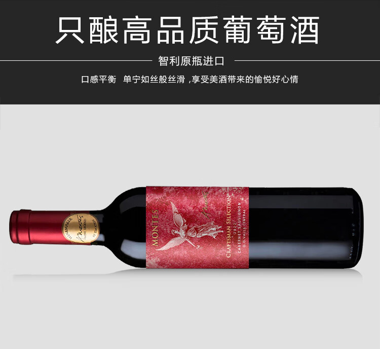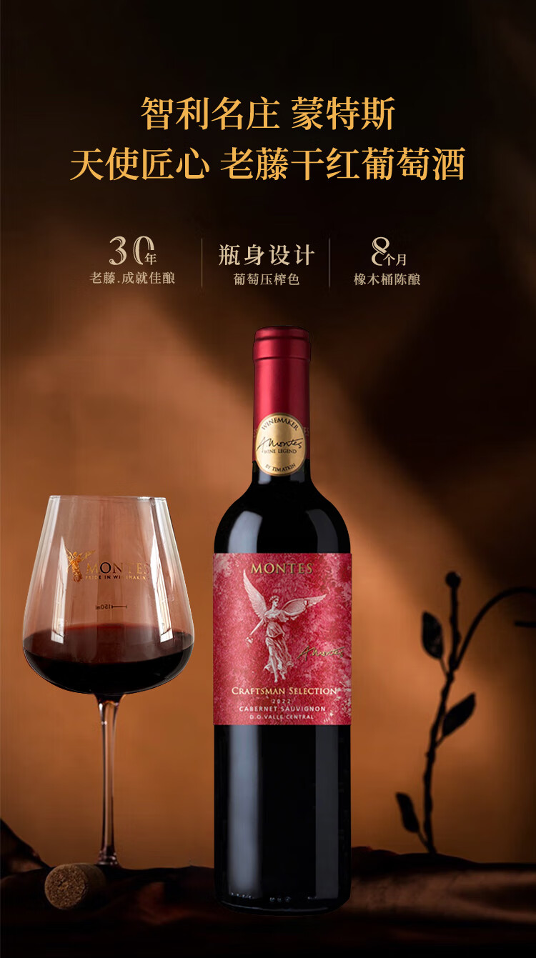 蒙特斯智利原瓶原装进口匠心系列赤霞珠干红葡萄酒750ml新年礼盒 天使匠心赤霞珠单支装
