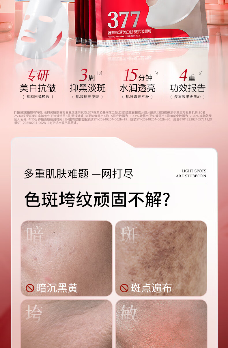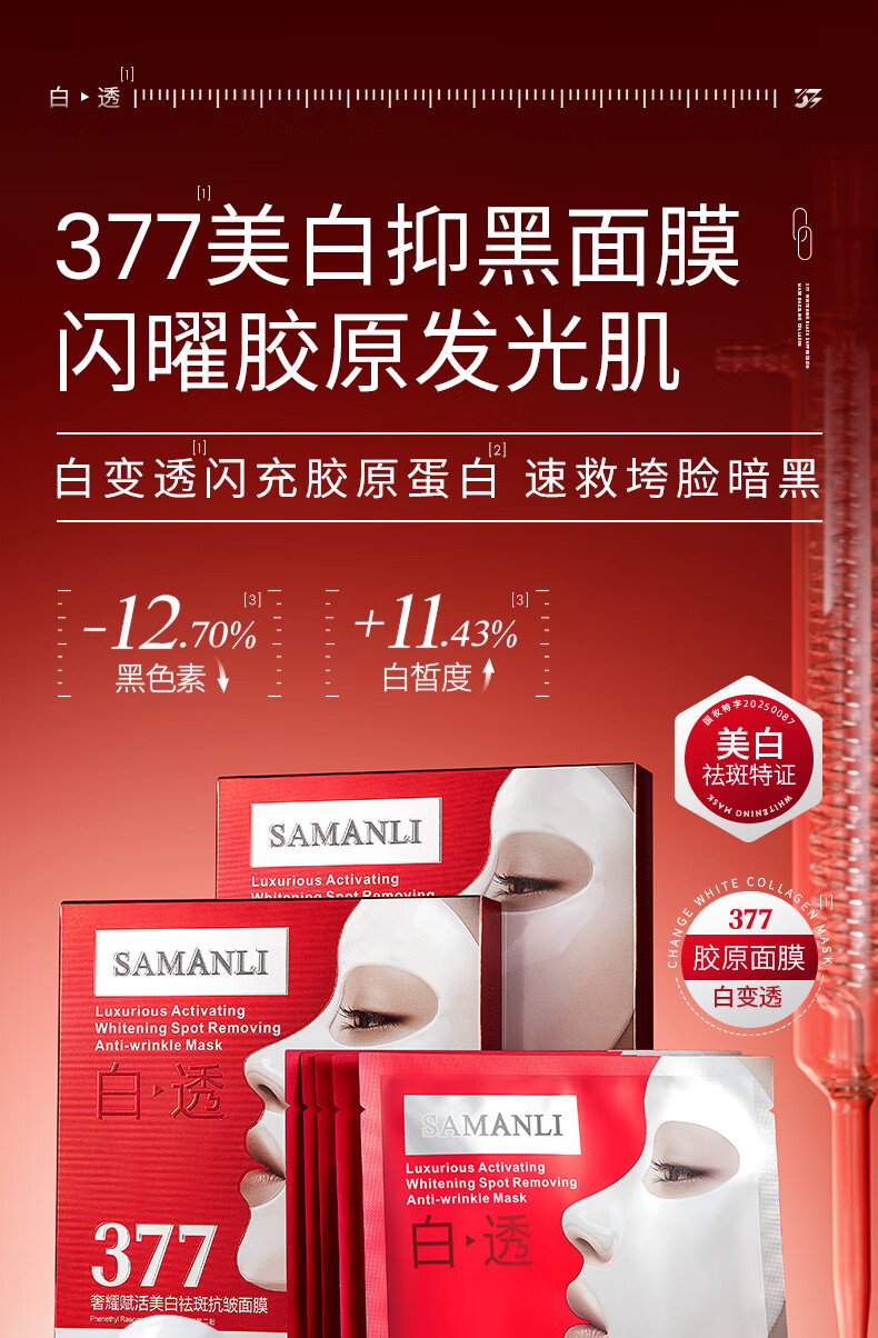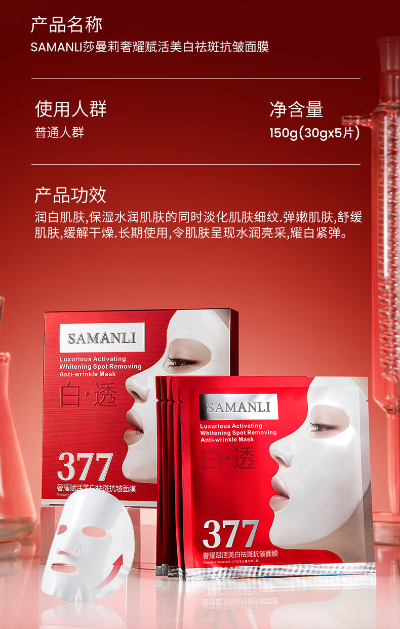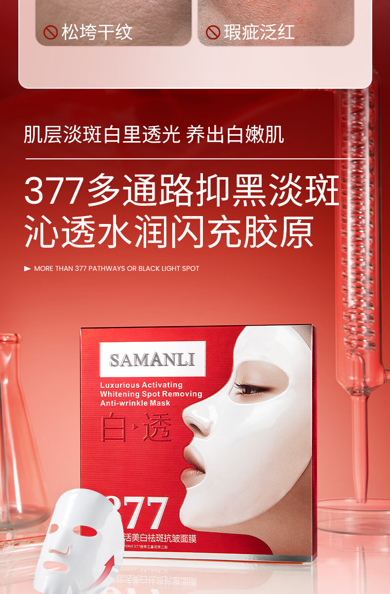莎曼莉 377面膜抗皱紧致抗衰老补水保湿美白淡斑去黄气暗沉提亮肤色女士 【拍1发4】面膜3盒/ 15片 +面霜1盒