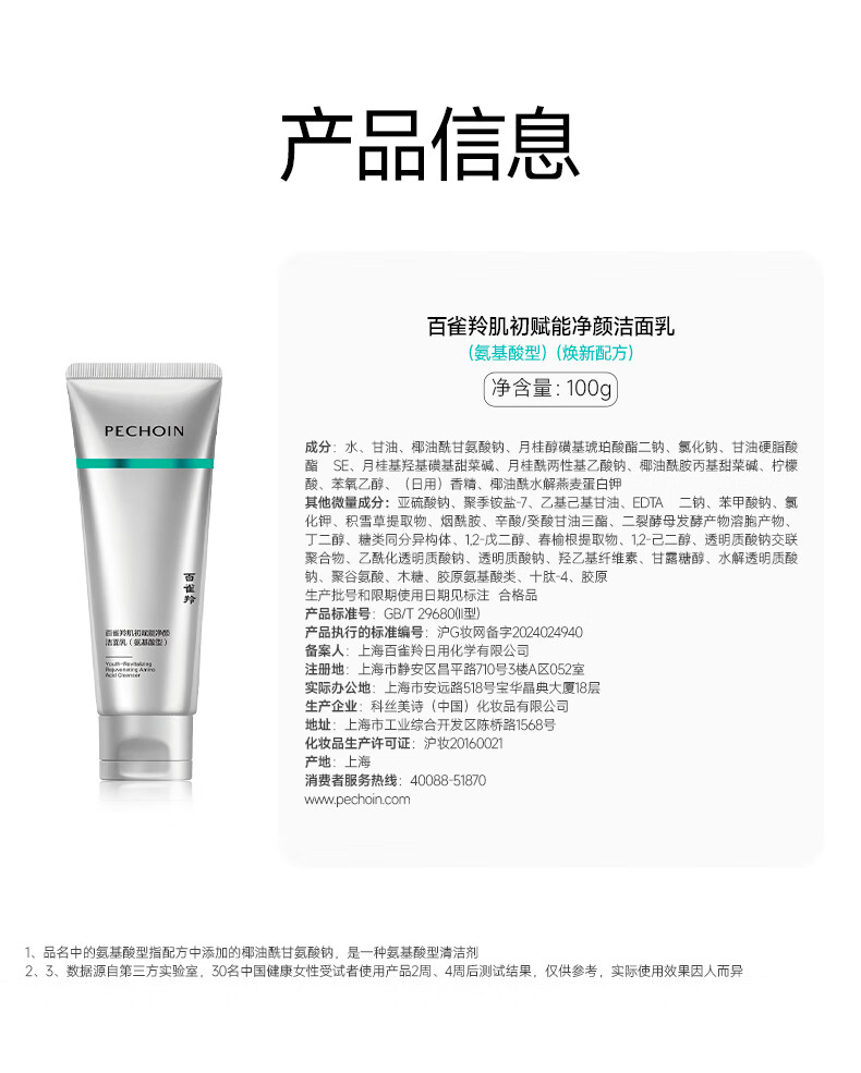 百雀羚肌初赋能氨基酸净颜洁面乳(焕新配方)2.0温和不刺激新年礼物