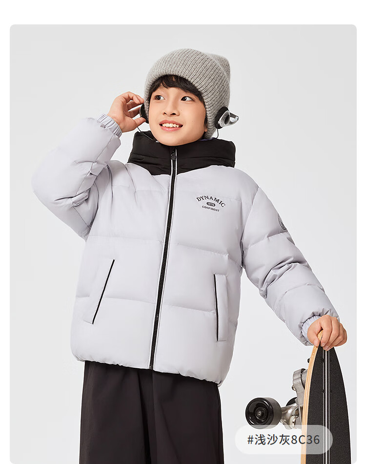 波司登【170可选】25年冬季新款男女童短款抗菌时尚连帽运动加厚羽绒服 黑色|8056 -厚款 170 88A 约 160-170cm 60kg
