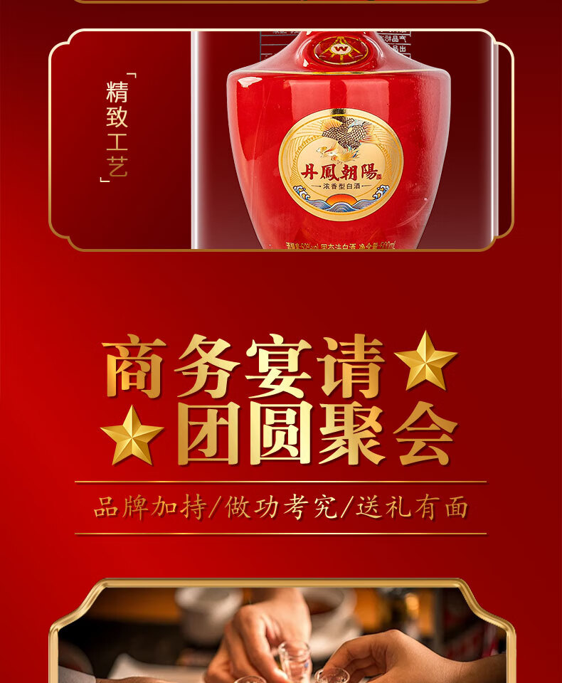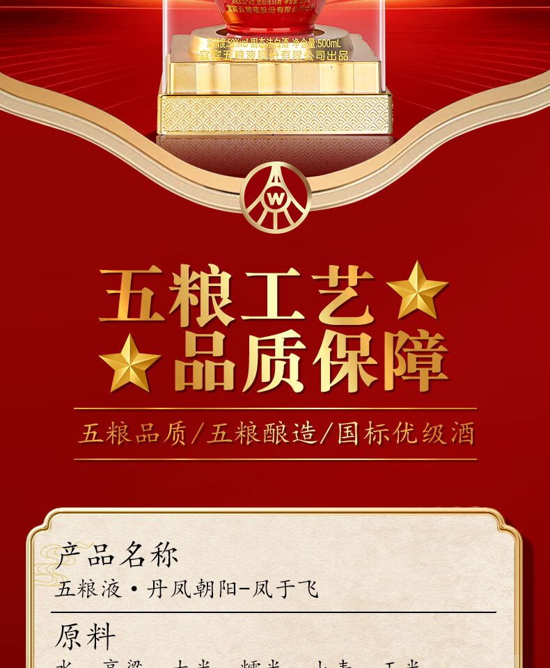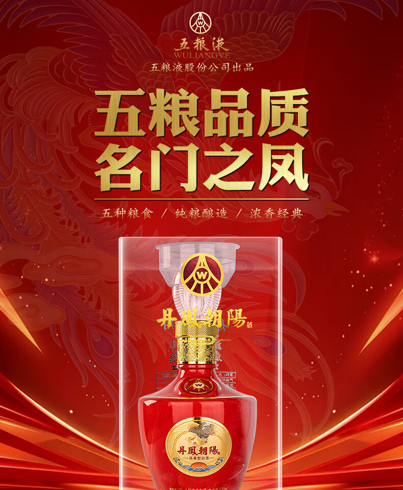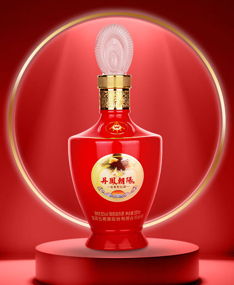 五粮液股份出品 丹凤朝阳 浓香型白酒 喜宴收藏送礼 52度 500mL 2瓶 双支礼盒装 赠礼杯