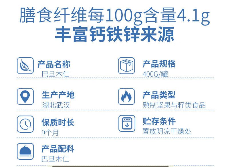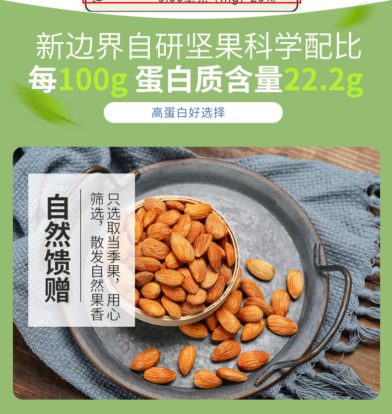 新边界 原味巴旦木仁400g 每日坚果炒货休闲零食干果扁桃仁大杏仁年货