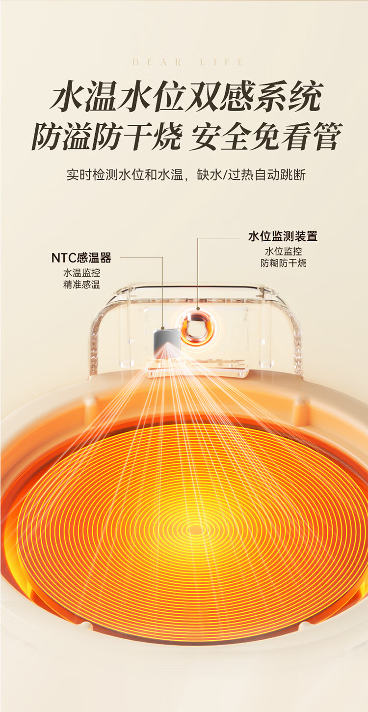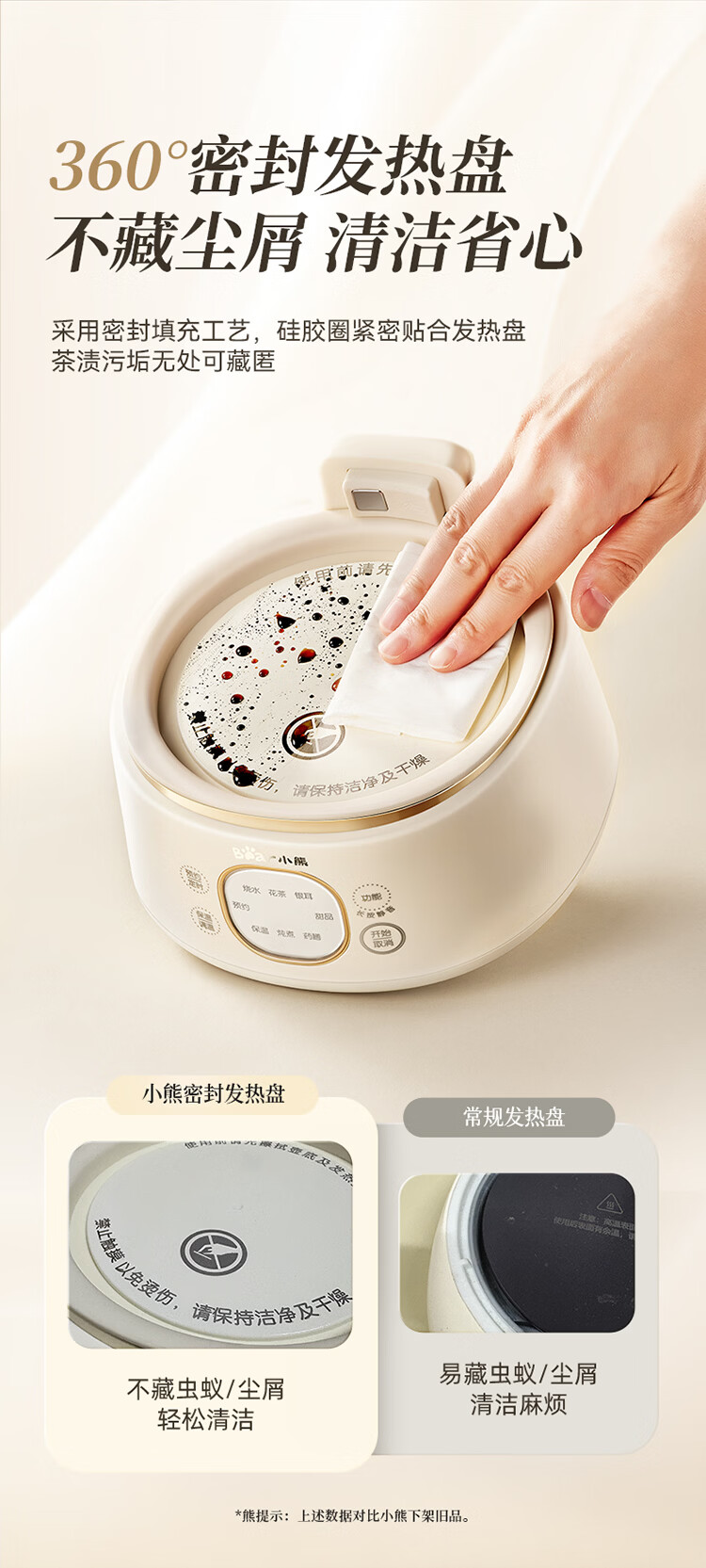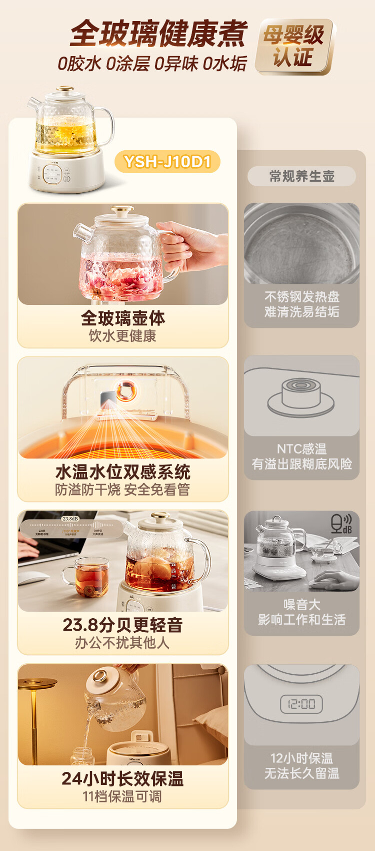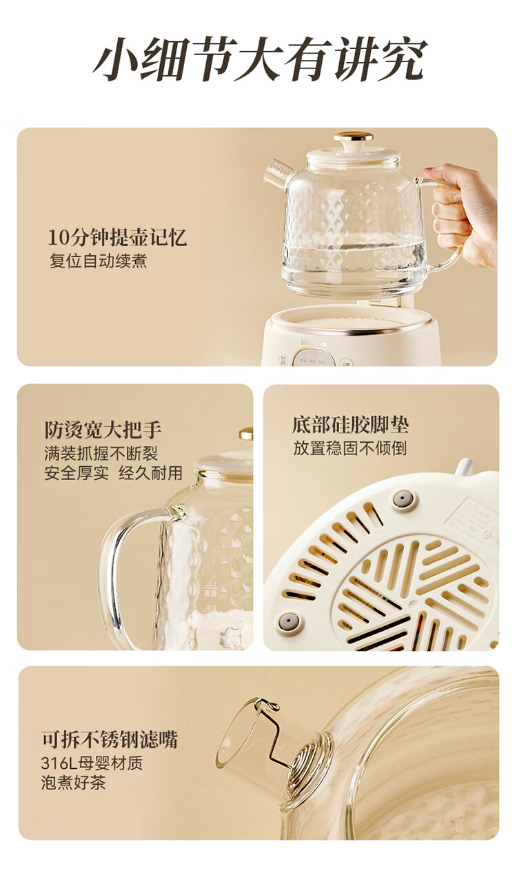 小熊(Bear)全玻璃养生壶 纯玻璃多功能恒温壶 办公室轻音炖煮花茶 1L YSH-J10D1