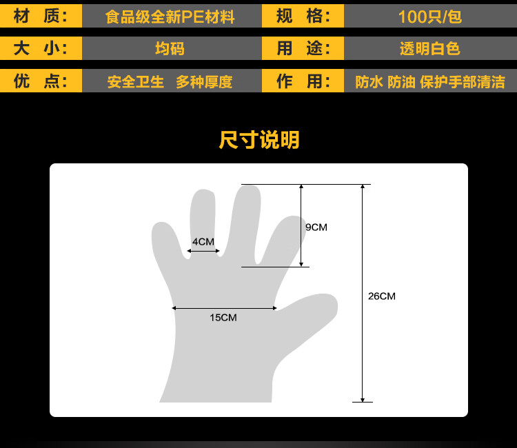 Jidaocook1000只一次性手套装餐饮美发手膜透明塑料PE薄膜手套 加厚100只【1包】