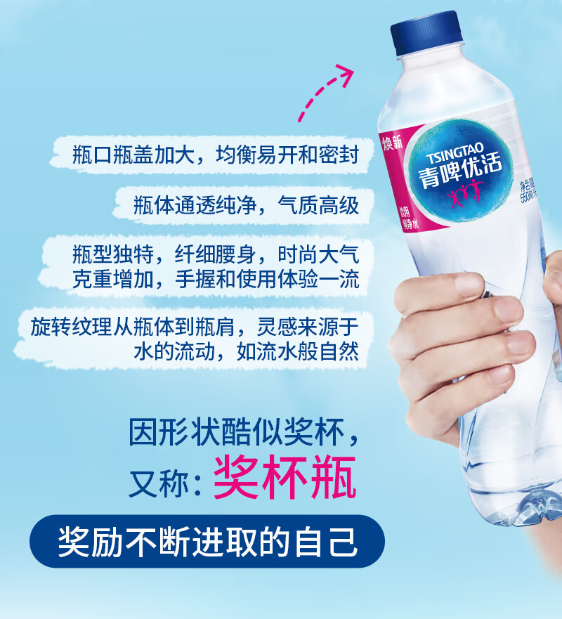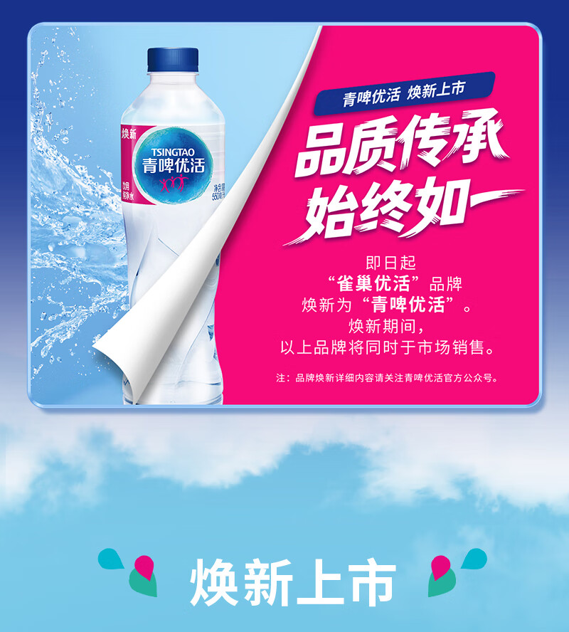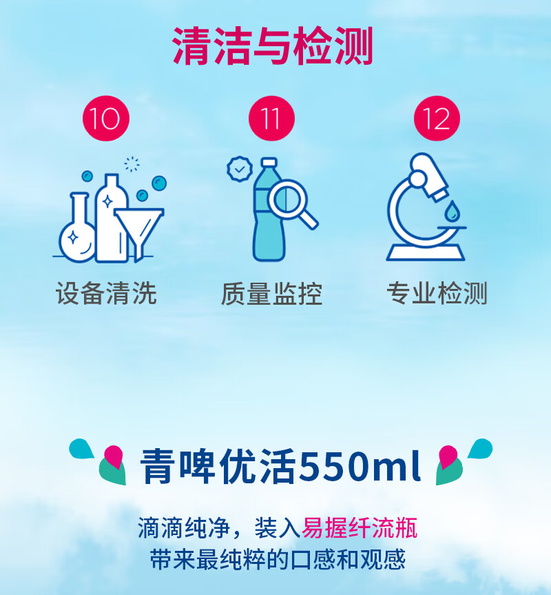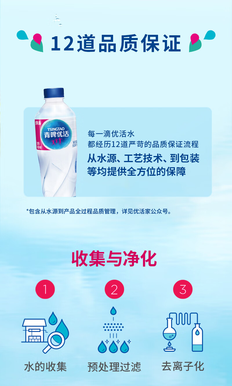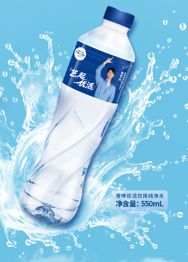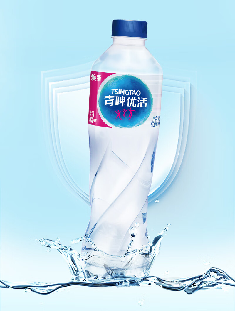 青啤优活(TSINGTAO)纯净水550ml*24瓶饮用水整箱装 张艺兴代言【热门商品】