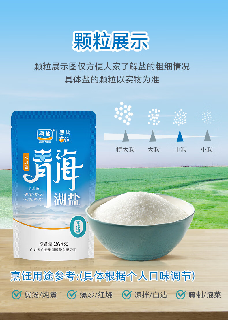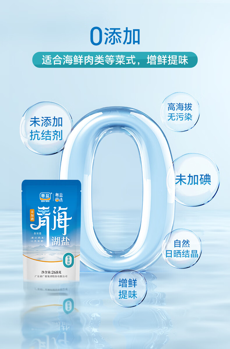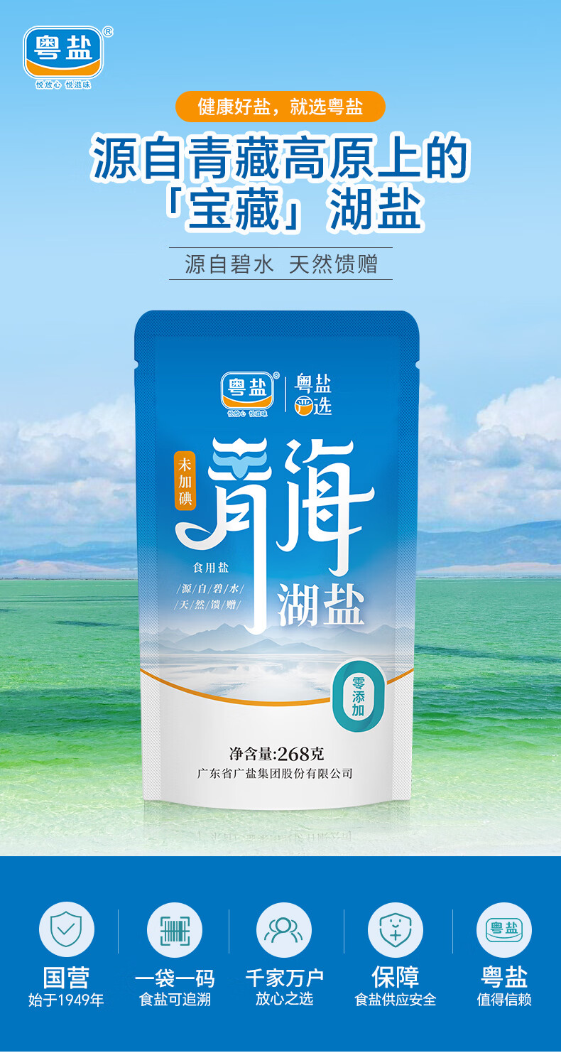 粤盐青海湖盐268g*5袋 无碘盐 食用盐无抗结剂0添加 察尔汗天然湖盐