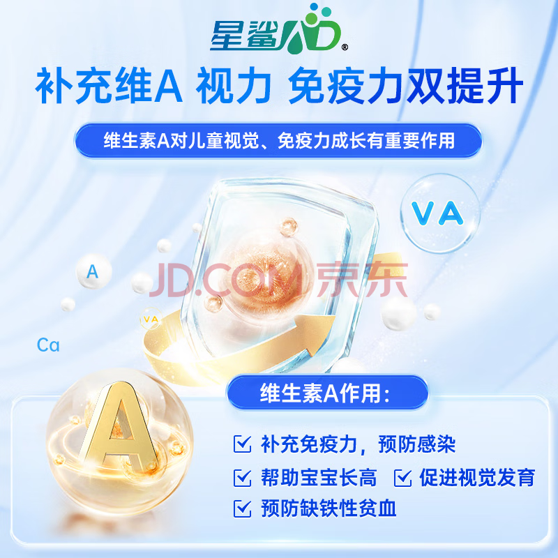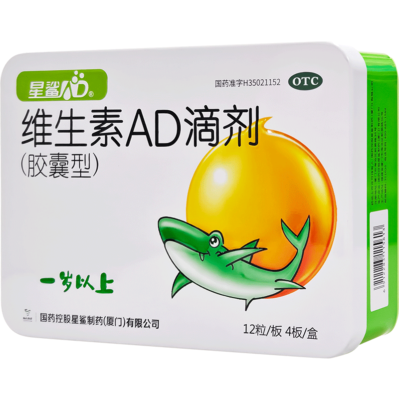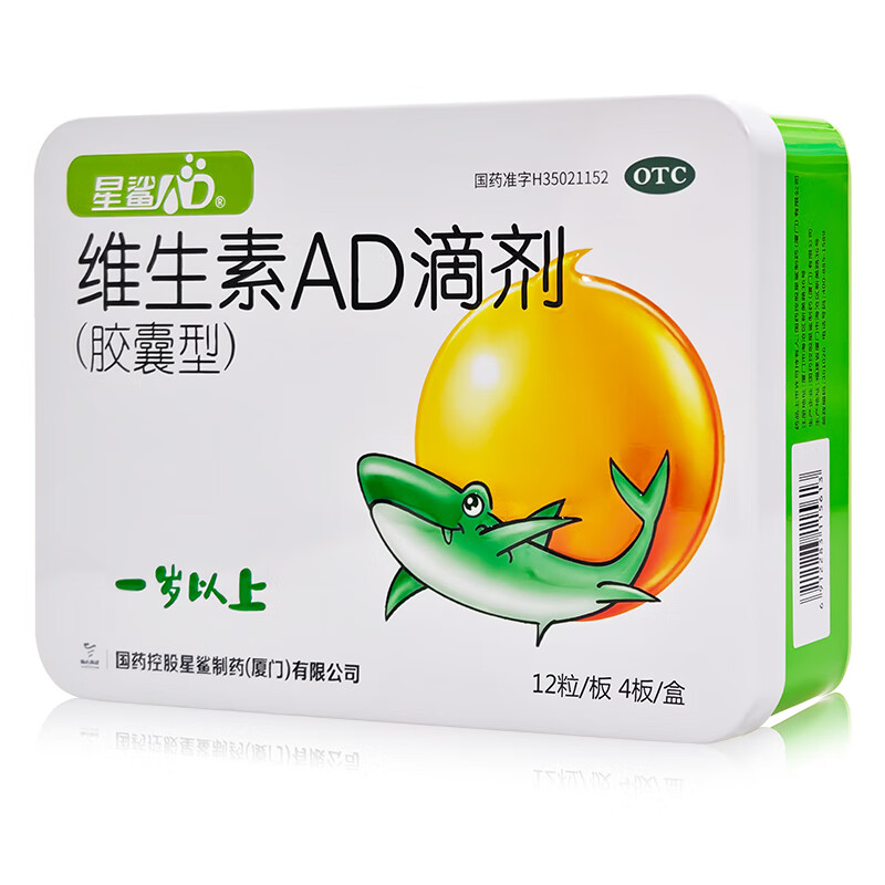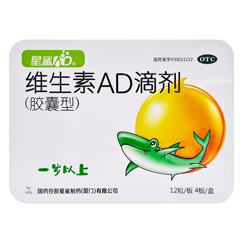 [星鲨]维生素AD滴剂 2000IU:700IU*30粒 5盒装 儿童佝偻病夜盲症及小儿手足抽搐症 蓝
