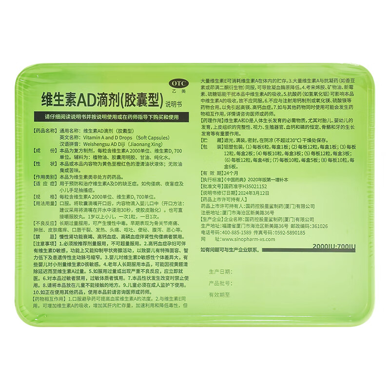 [伊可新]维生素AD滴剂 2000IU:700IU*60粒 1盒装 2000IU:700IU婴幼儿一岁以上佝偻病夜盲症及小儿手足抽搐症