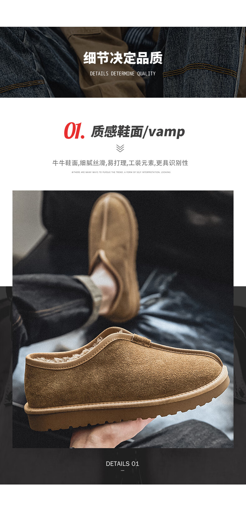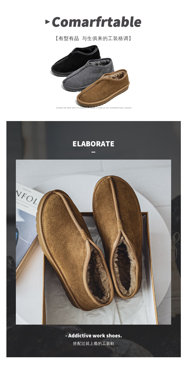 月芽儿雪地靴女款2025新款冬季加绒加厚低帮板鞋百搭保暖人造长毛绒鞋 绒里棕色03T 34