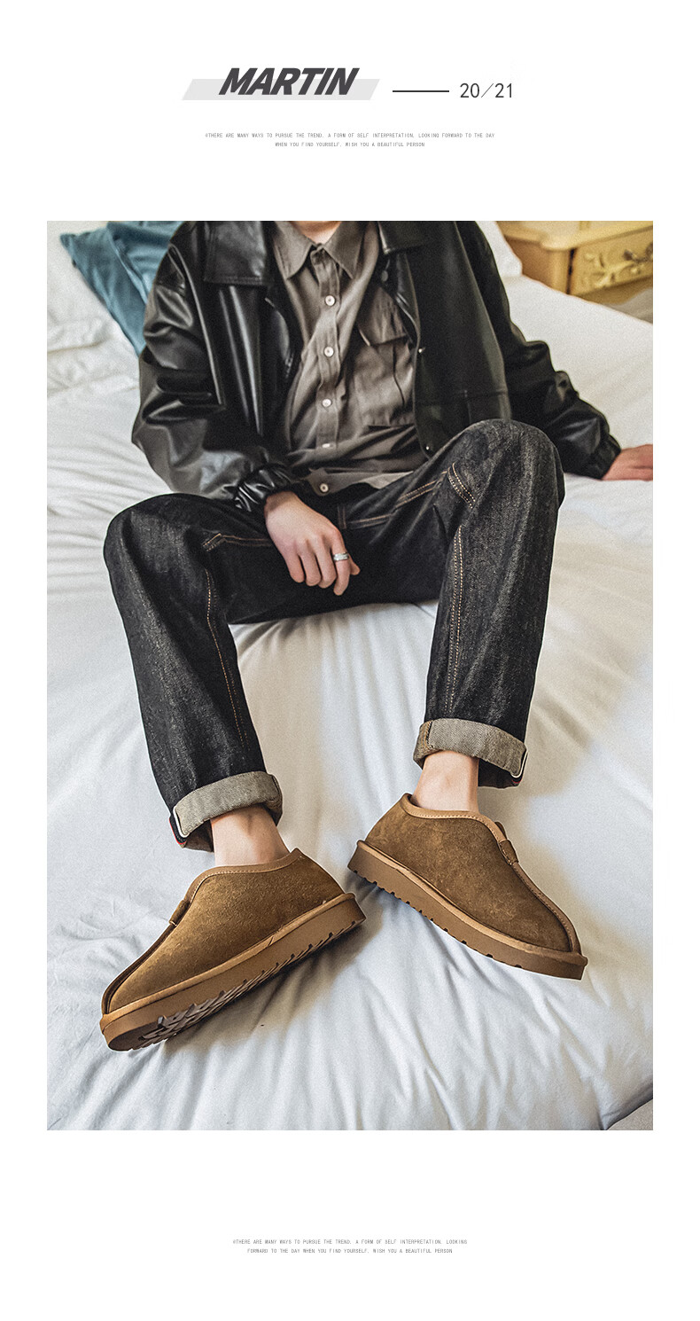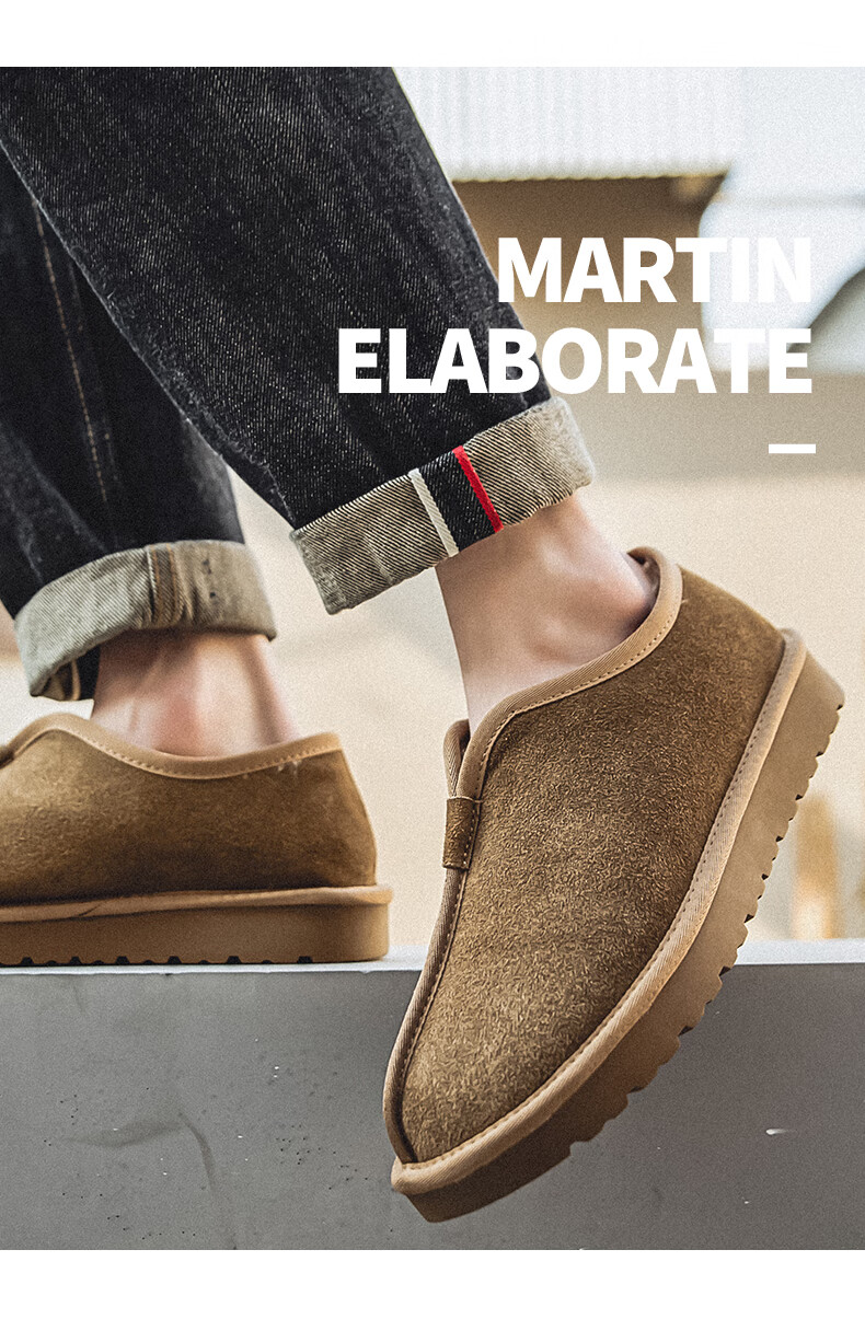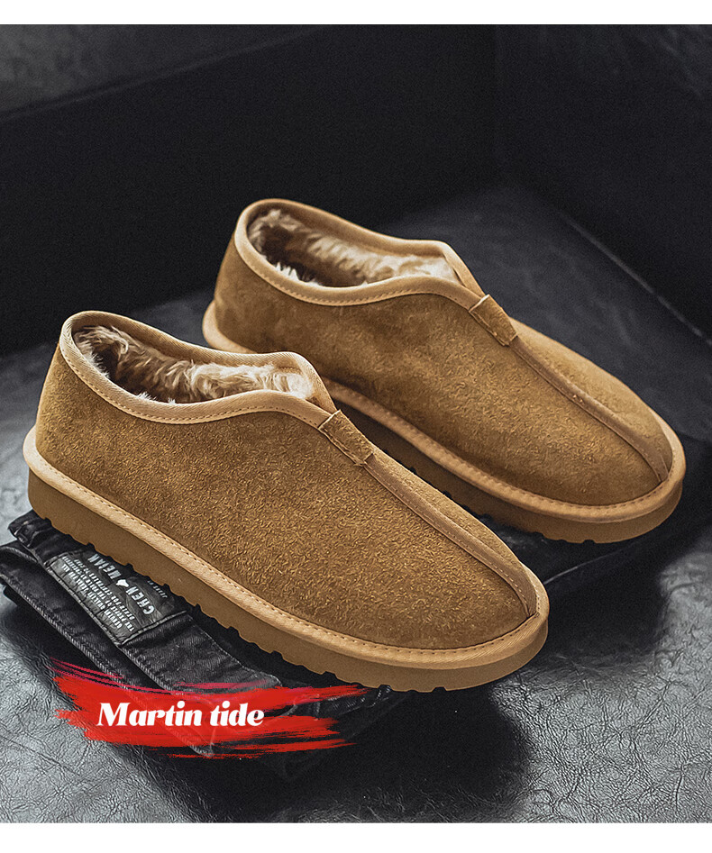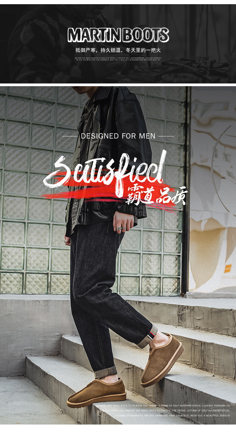 稻草人(MEXICAN)2026新款雪地靴男冬季保暖真皮复古加绒加厚棉鞋潮流一脚蹬面包鞋 黄棕色 38