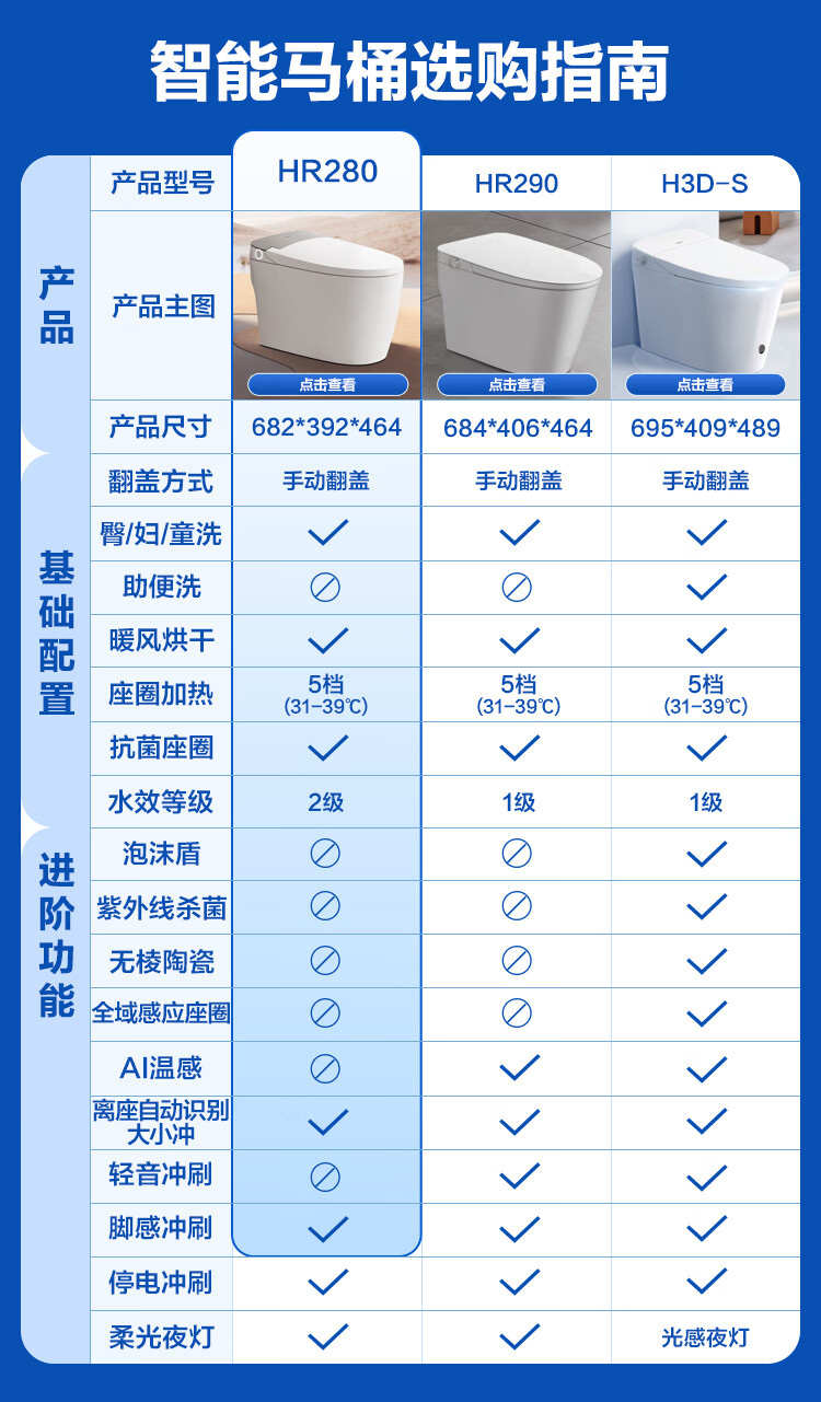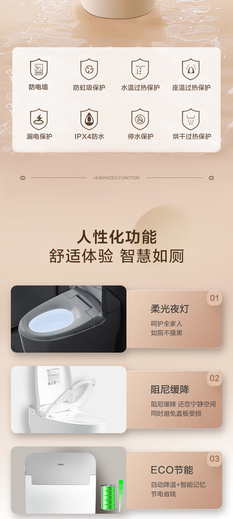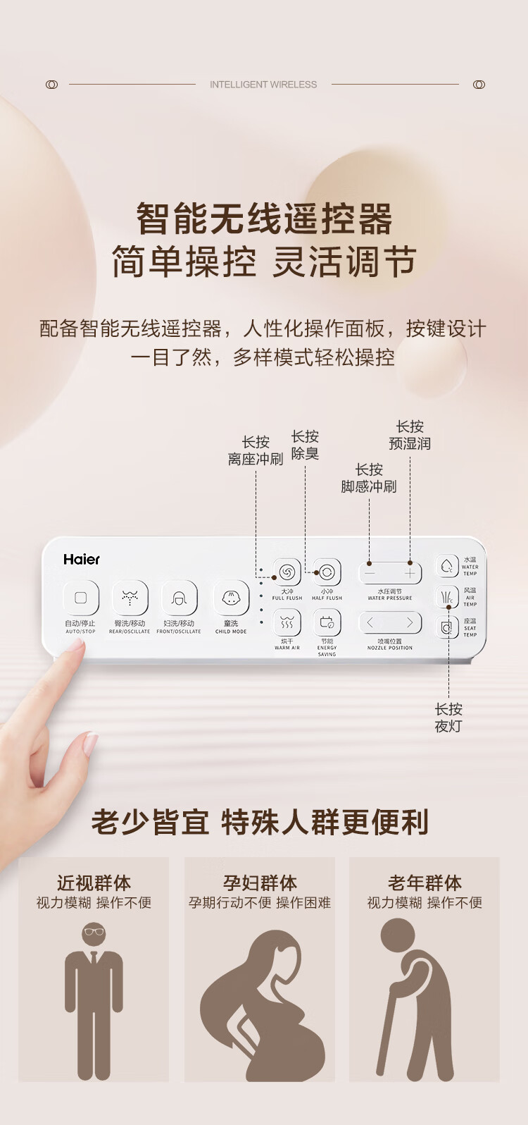 海尔(Haier)智能马桶 无水压限制 脚感离座冲刷 净水洗 座圈加热 预湿润夜灯 【脚感冲刷暖风烘干】HR280 坑距是285-385选 305/300mm