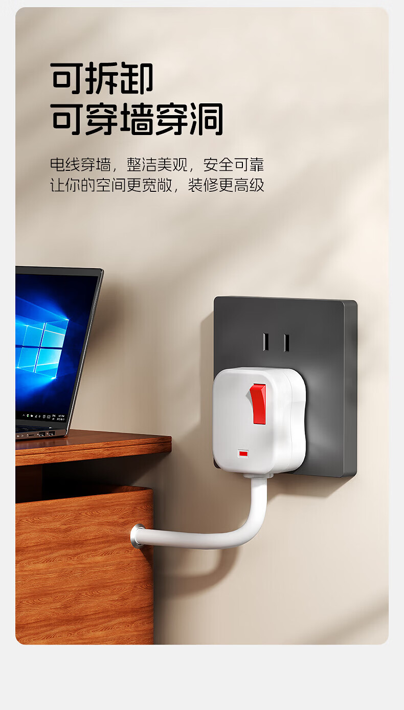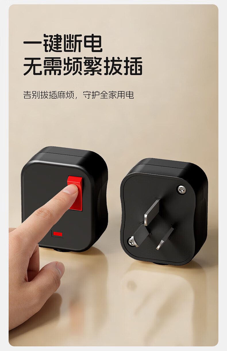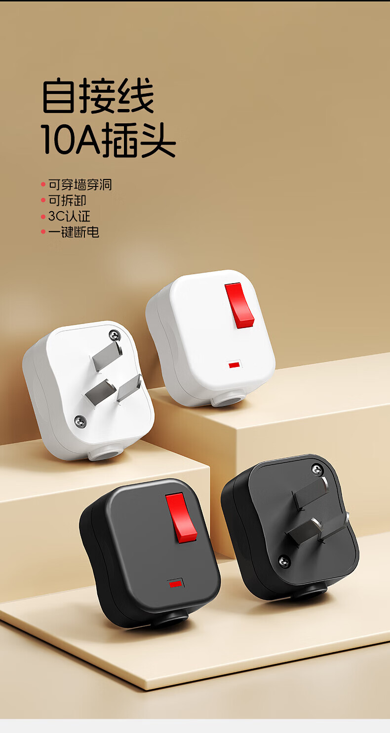 国际电工新国标安全电源插头自接线三脚插头10A带开关可拆卸3脚插无线插排 【需要自接线】三脚插头黑色10A带开关