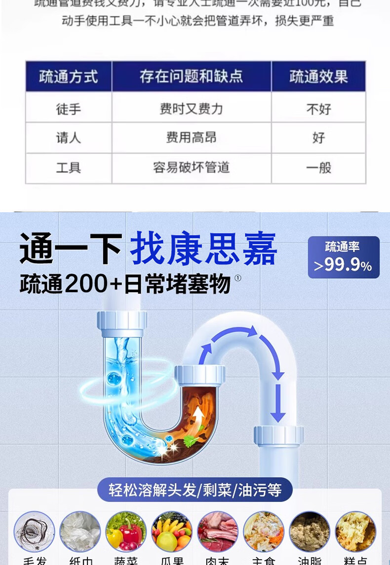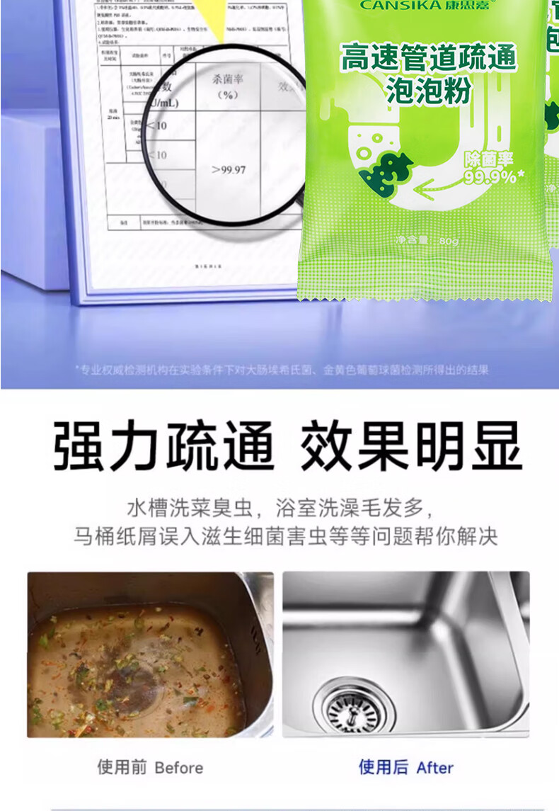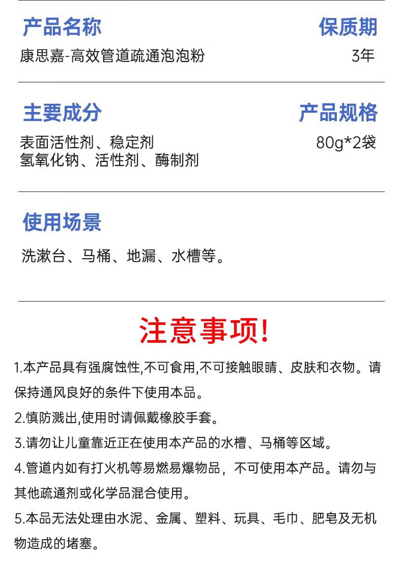 康思嘉管道疏通剂泡泡粉1包强力溶解厨房下水道疏通剂重油污堵塞