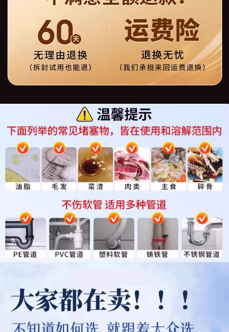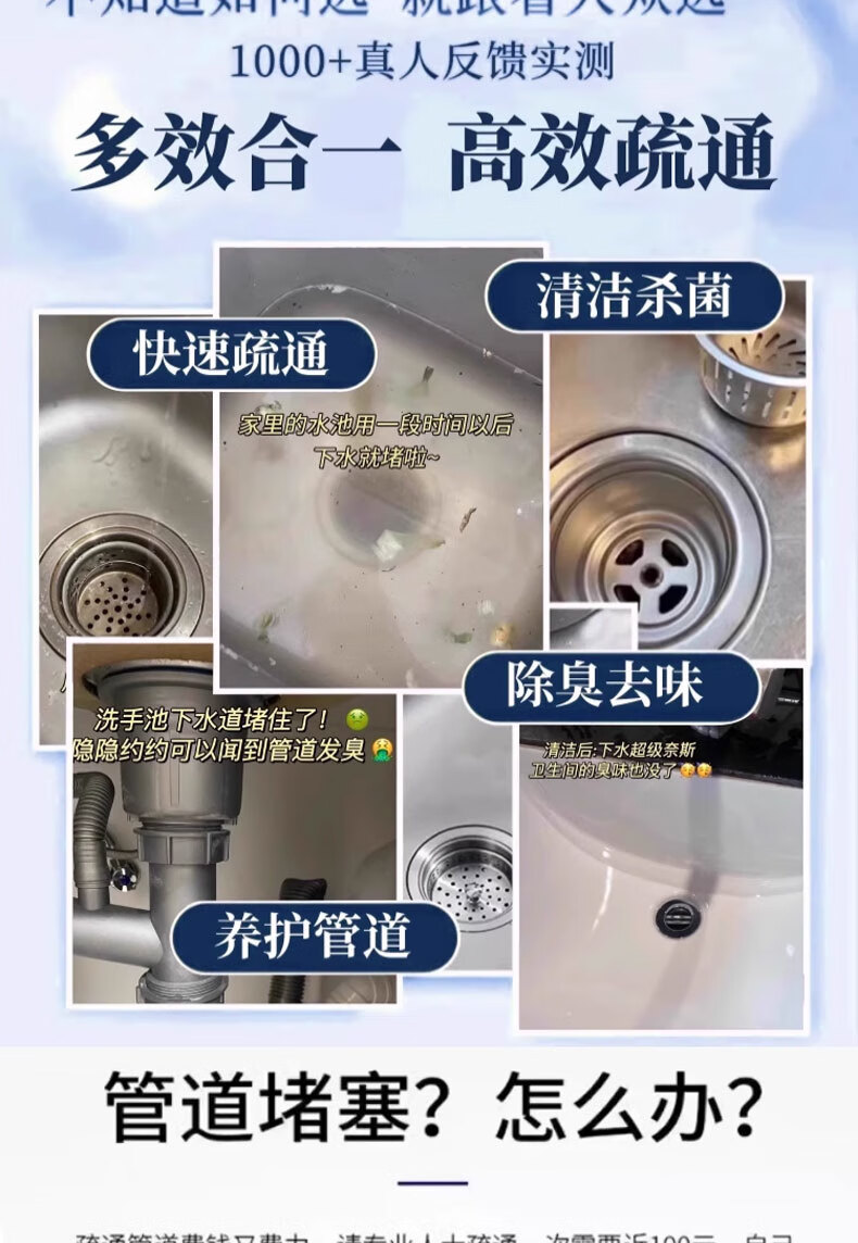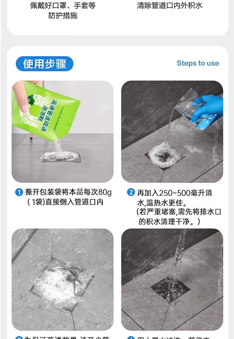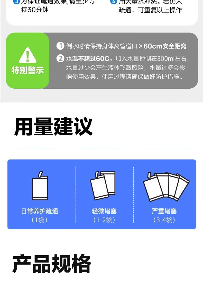 康思嘉管道疏通剂泡泡粉1包强力溶解厨房下水道疏通剂重油污堵塞