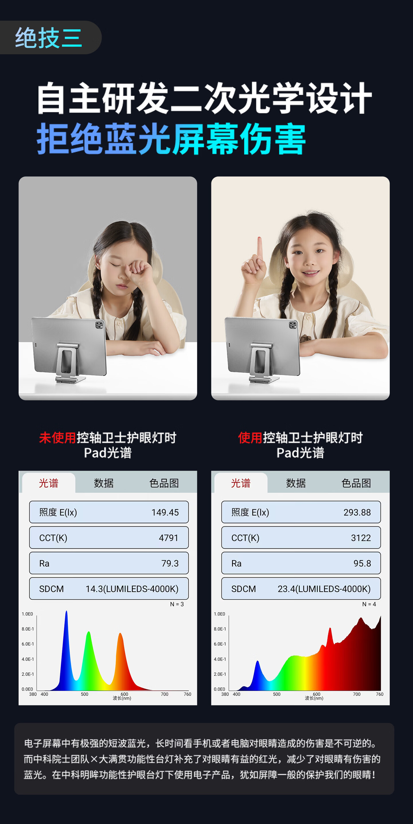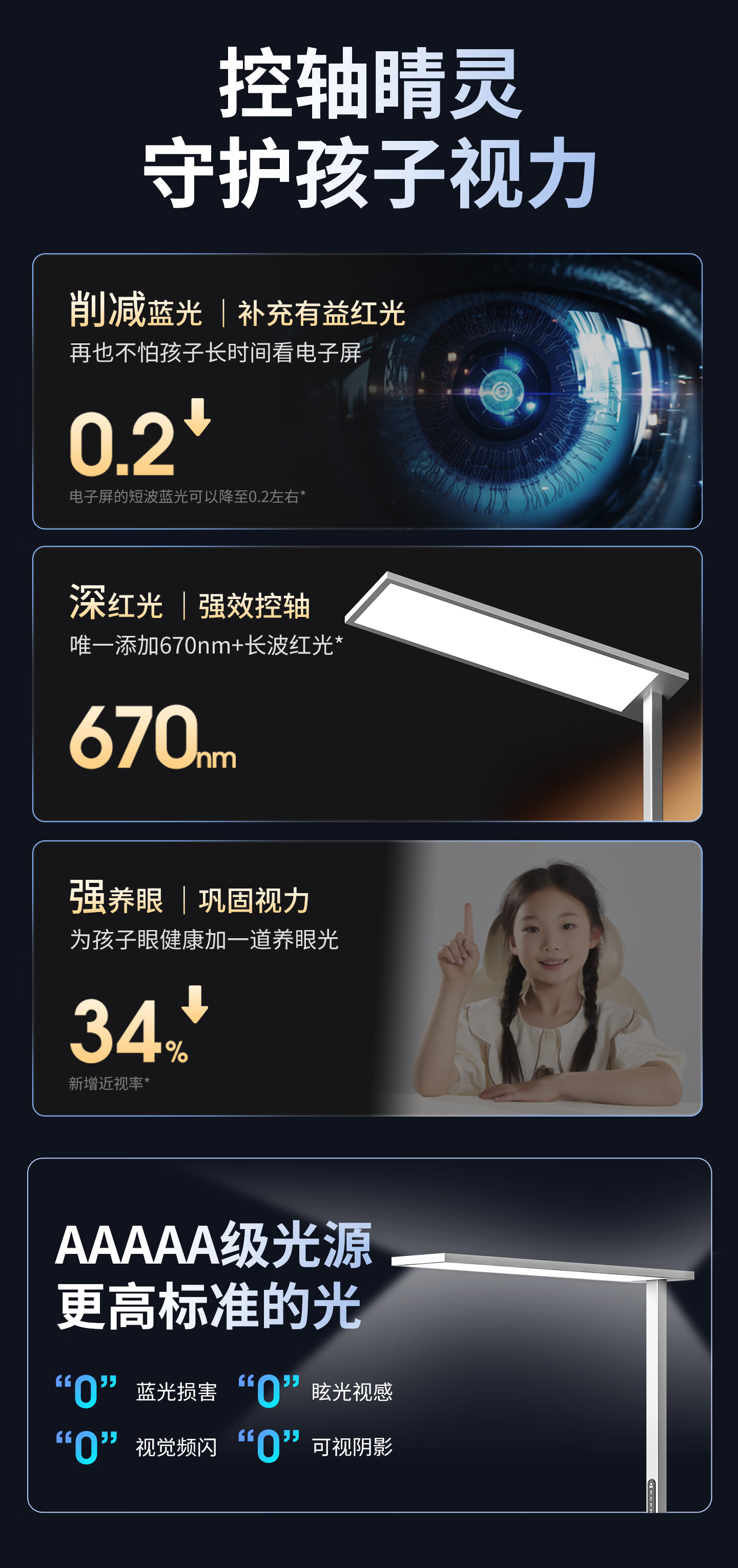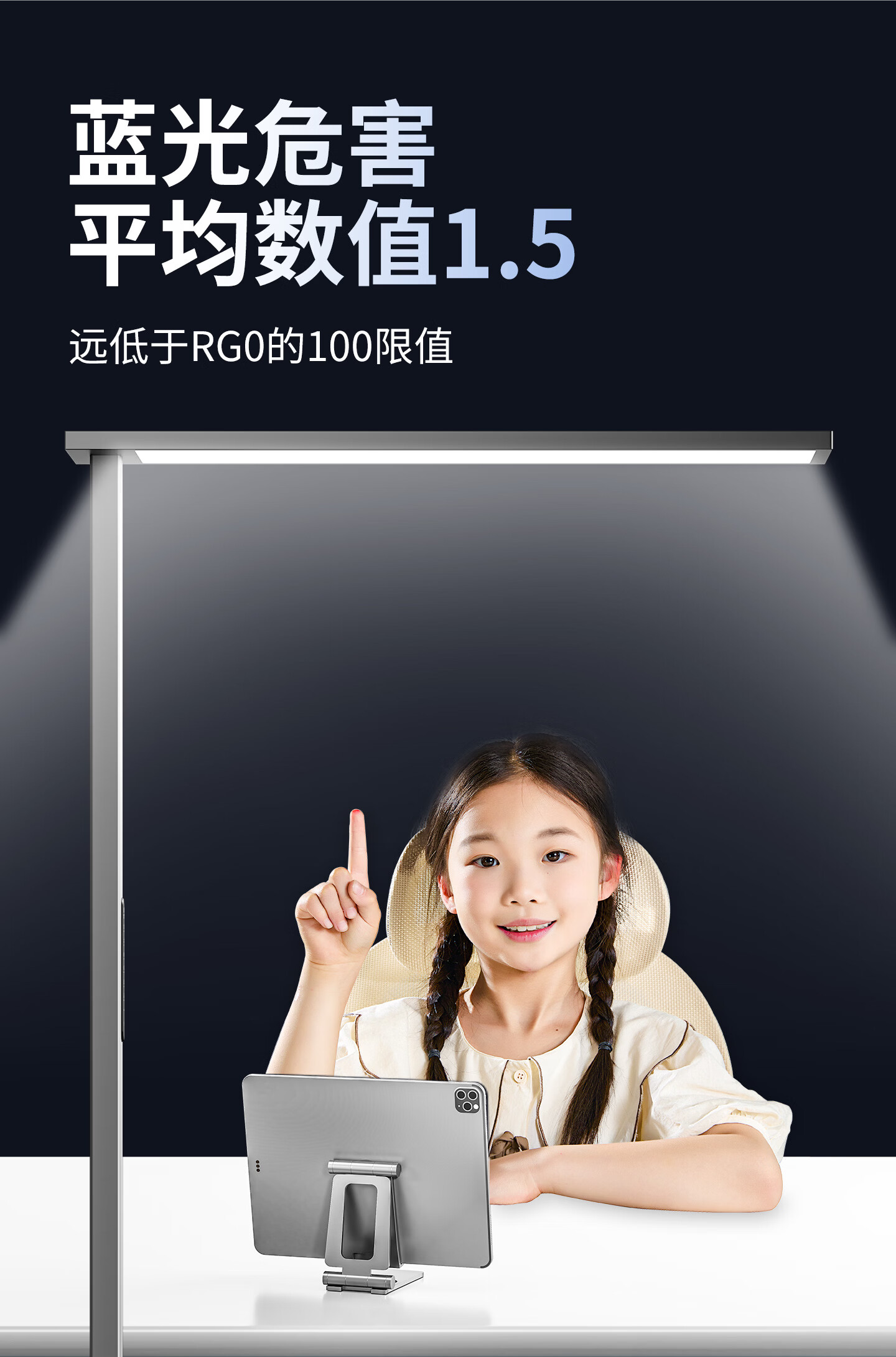 琪朗台式护眼大路灯 桌面立式工作学习灯 儿童家用书桌阅读台灯小夜灯 T4 Plus落地款