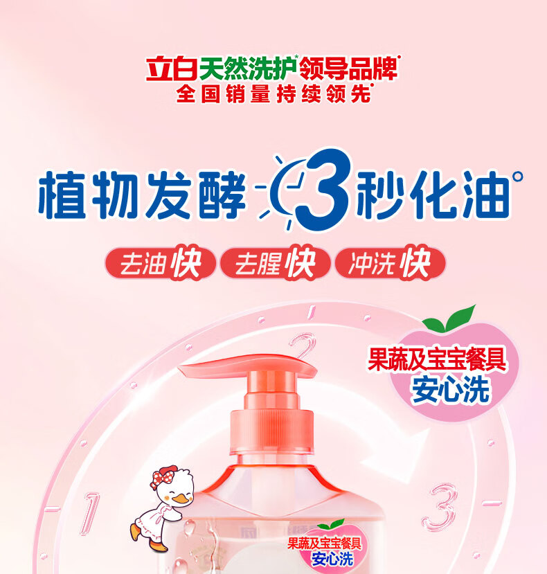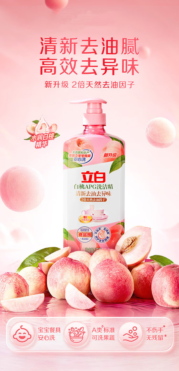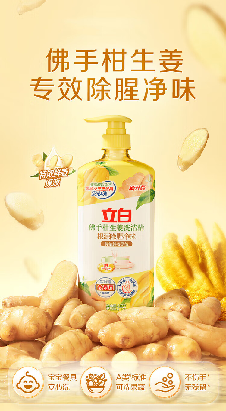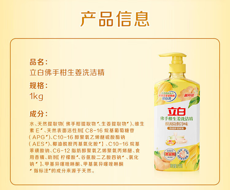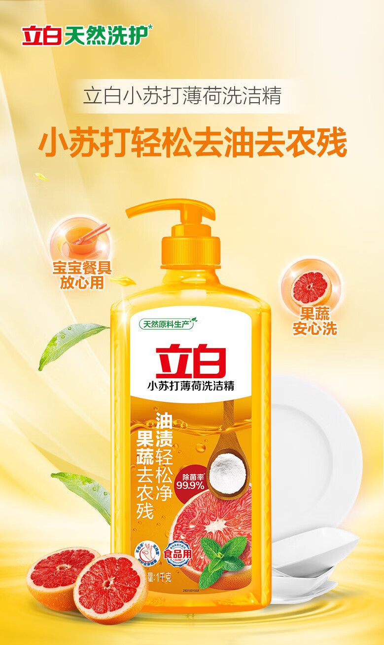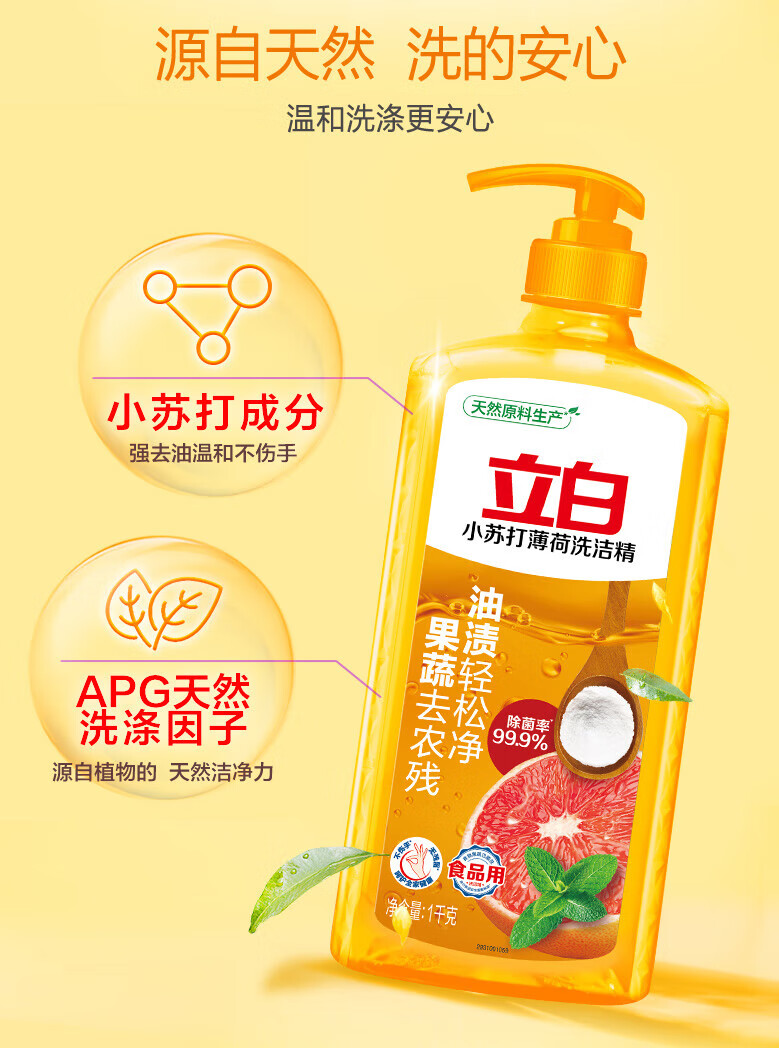 立白柠檬洗洁精洗涤剂洗碗液食品用餐具净家用实惠装家庭大桶按压瓶式 青柠洗洁精1kg*1瓶