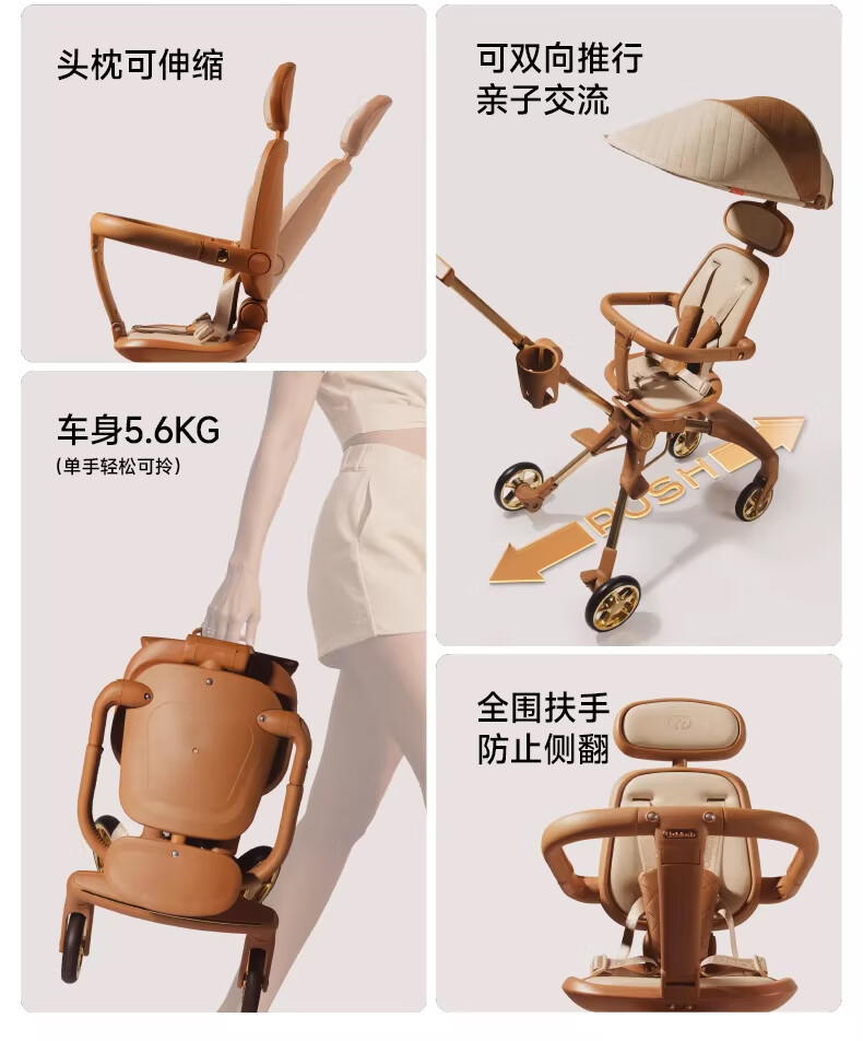 德拉玛(DELAMA)S1遛娃神器婴儿推车高景观360度旋转双向轻便折叠手推车轻便推车 S1黑耀金