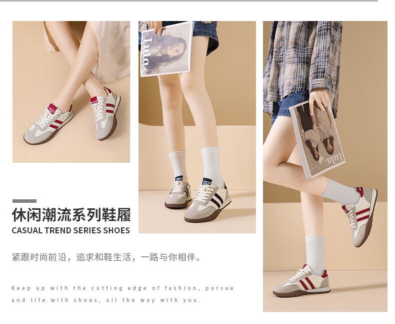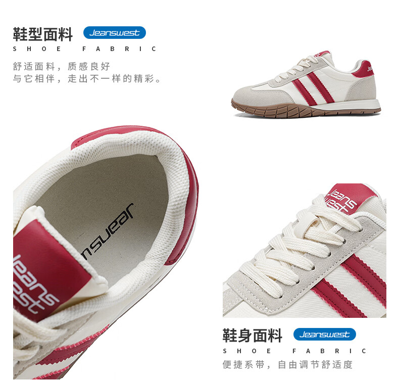 真维斯(Jeanswest)德训鞋女2025秋季新款经典休闲柔软舒适百搭学生板鞋 米红 40