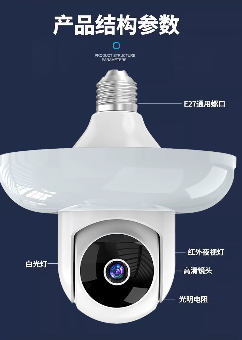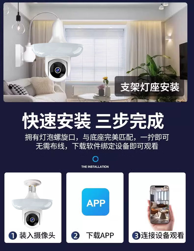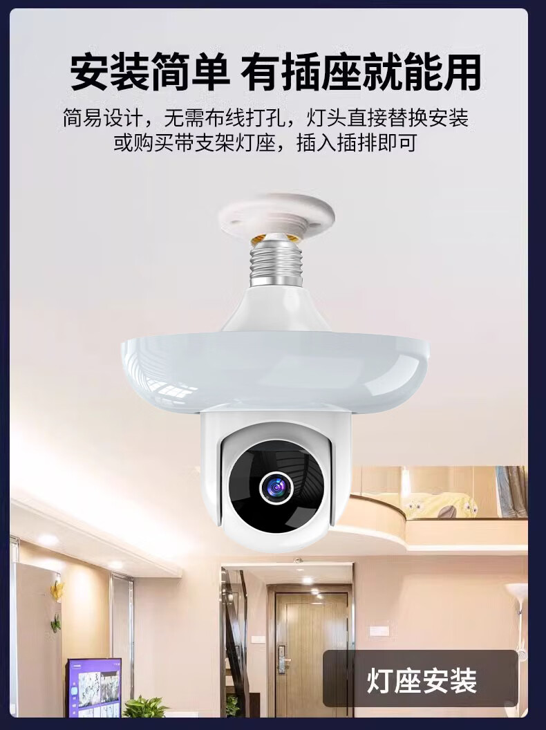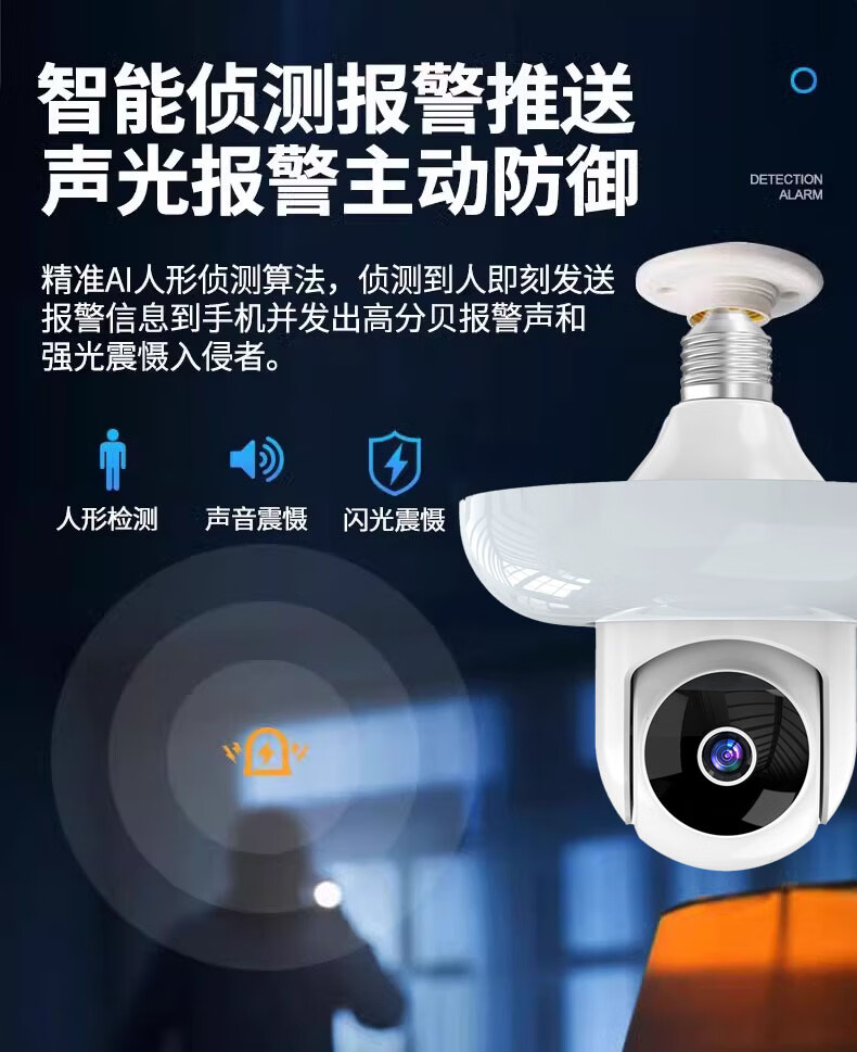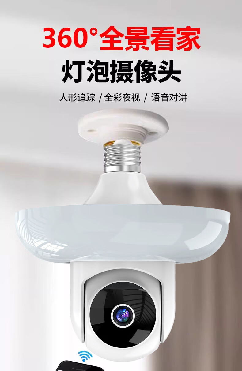DIDSETH灯头式照明监控摄像头无线WiFi家用监控器360度无死角云台机手机远程超高清夜视全彩室内监控摄像 【WIFI2.4G】全景监控LED灯+32G回放卡
