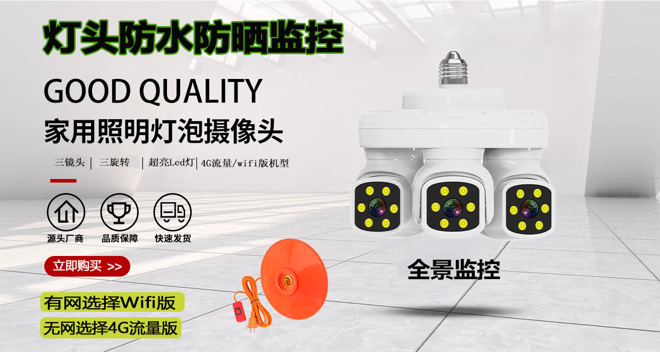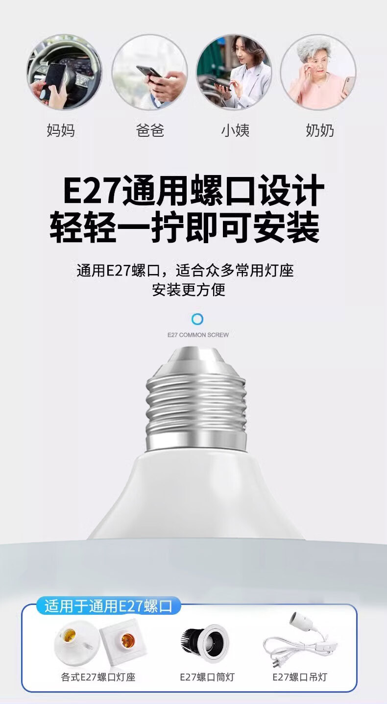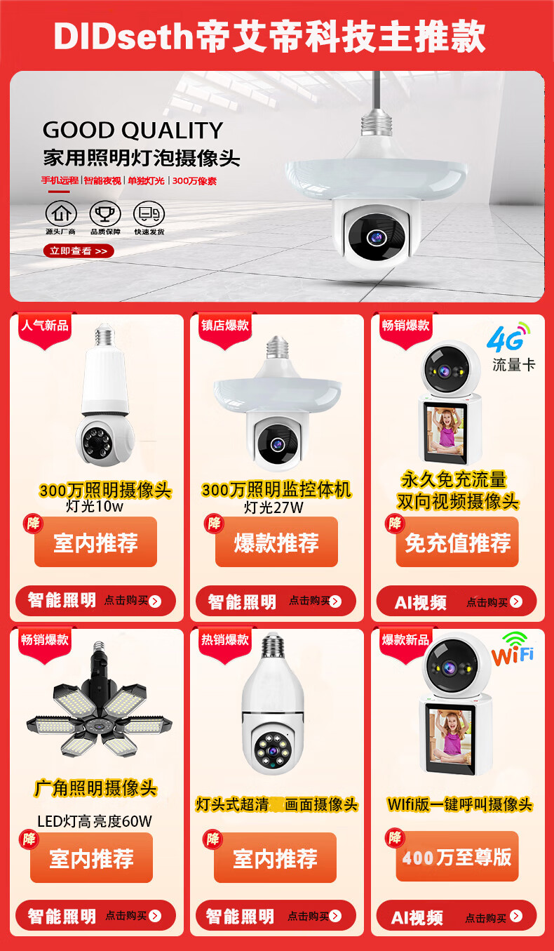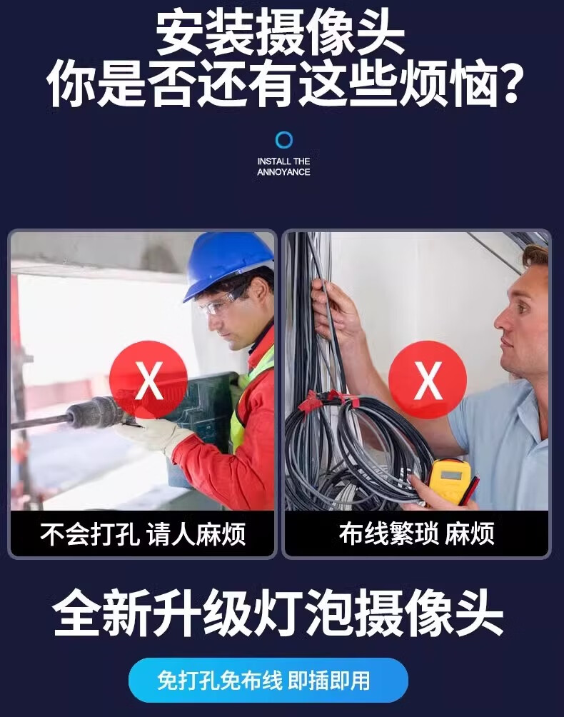 DIDSETH灯头式照明监控摄像头无线WiFi家用监控器360度无死角云台机手机远程超高清夜视全彩室内监控摄像 【WIFI2.4G】全景监控LED灯+32G回放卡