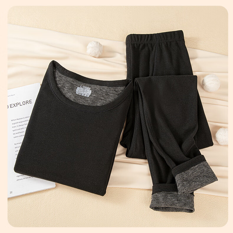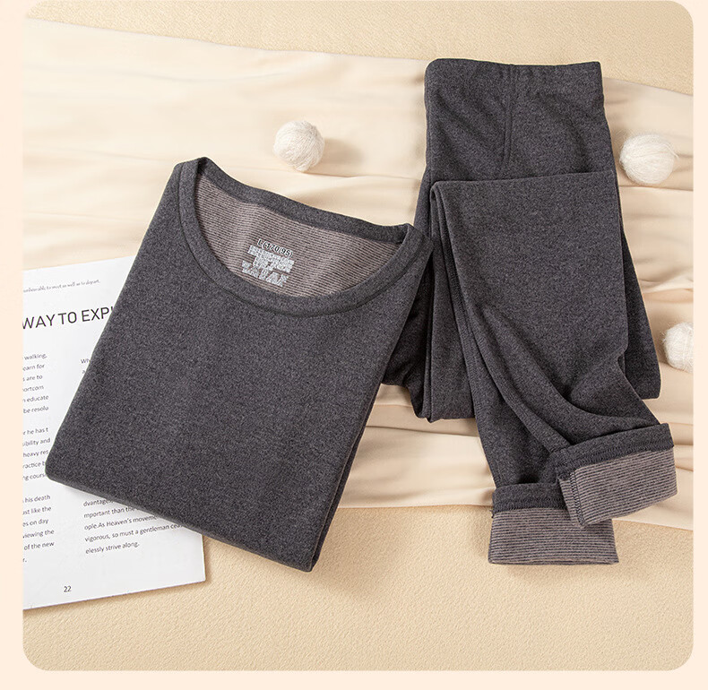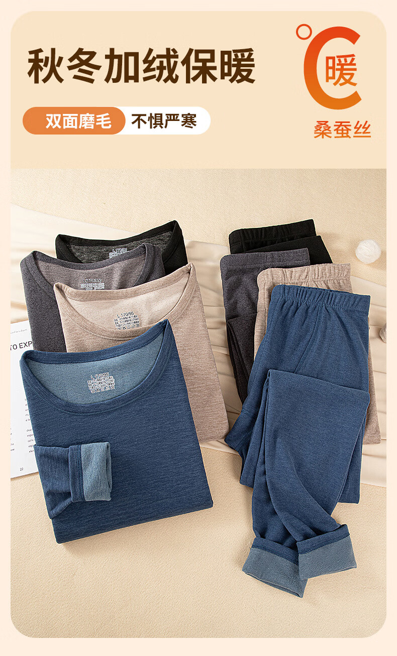诗莉奥(SHILIAO)男士无痕女加绒加厚秋衣秋裤情侣式保暖内衣无痕 山羊绒蚕丝黑色男 L