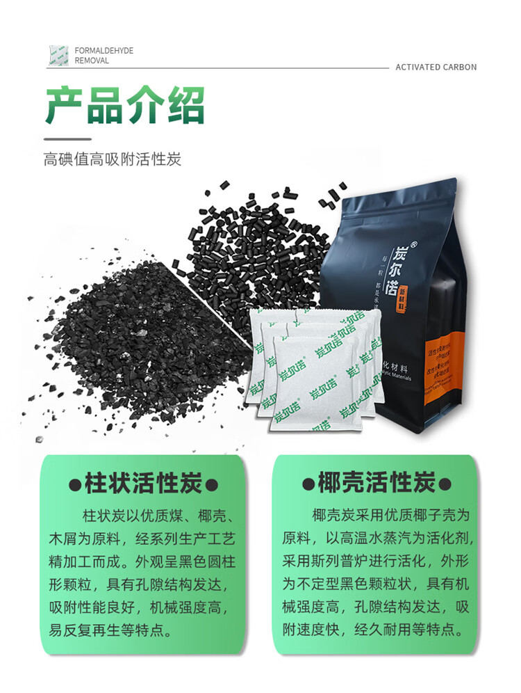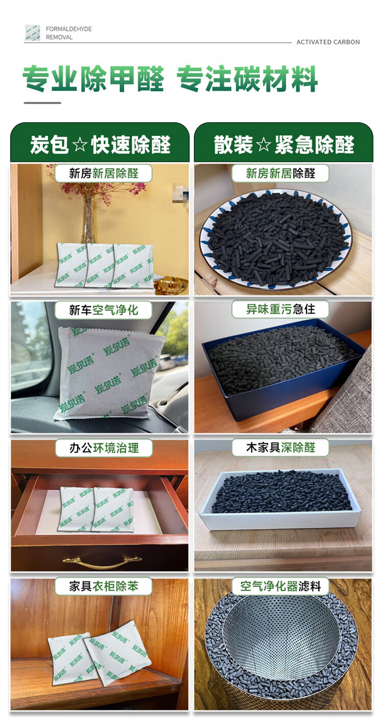炭尔诺国标椰壳活性炭包除甲醛新房装修室内衣柜卧室汽车1000碘值竹碳包 白色 50g*200个【国标柱状碳包】 大套柜子家具