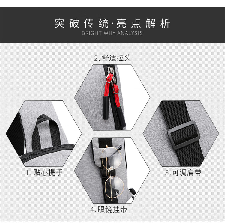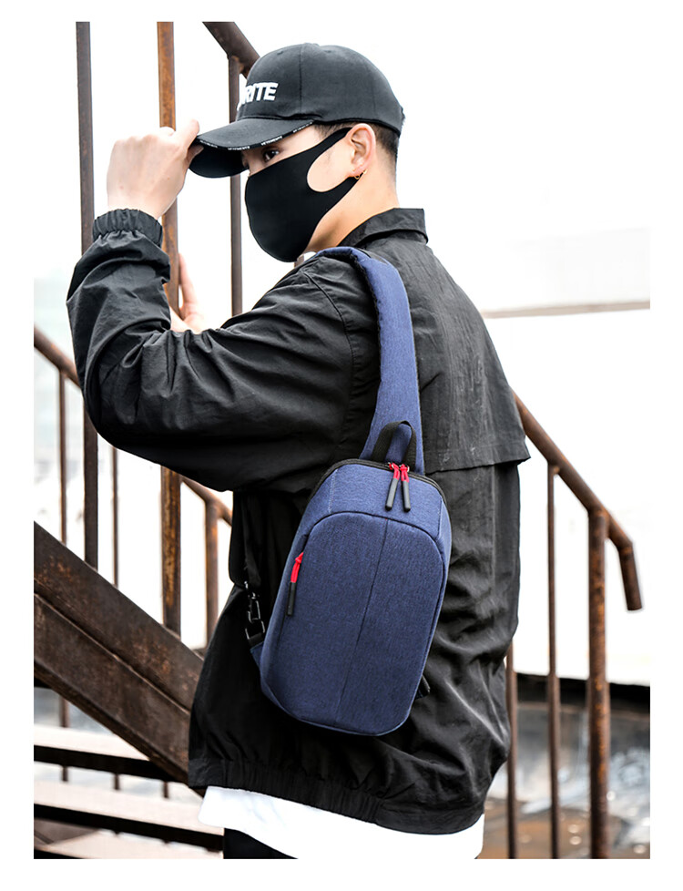 新款胸包斜挎包潮流时尚简约单肩包多功能背包男士腰包休闲运动包 蓝色