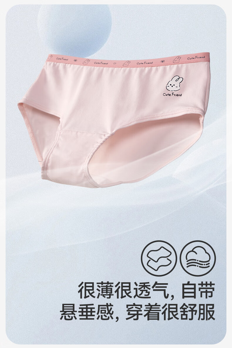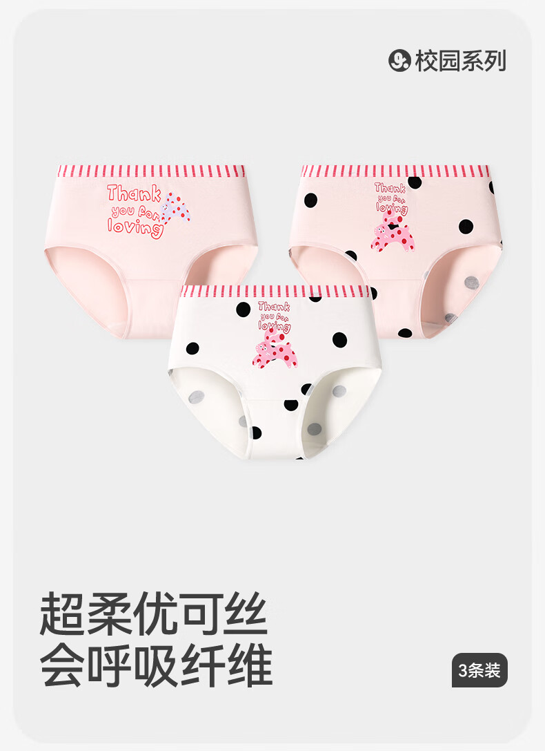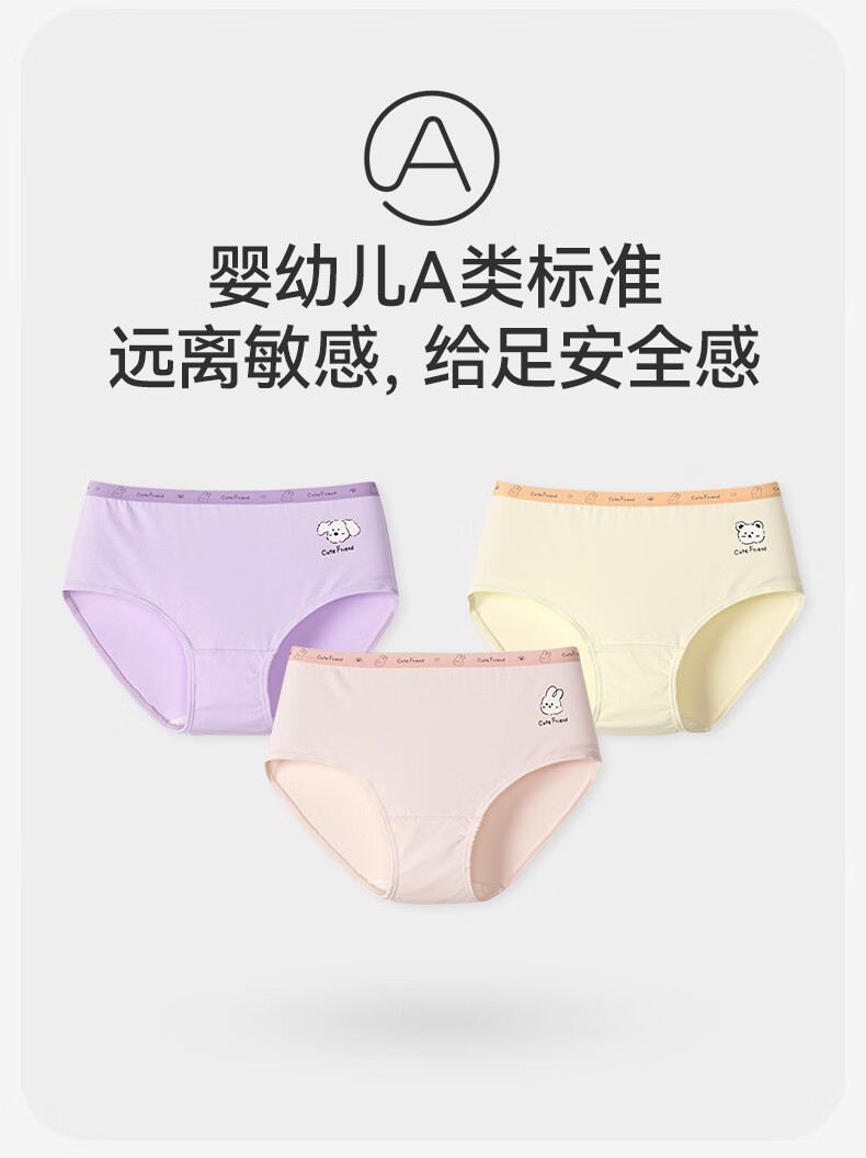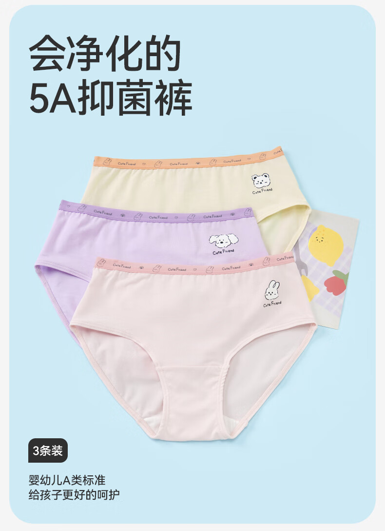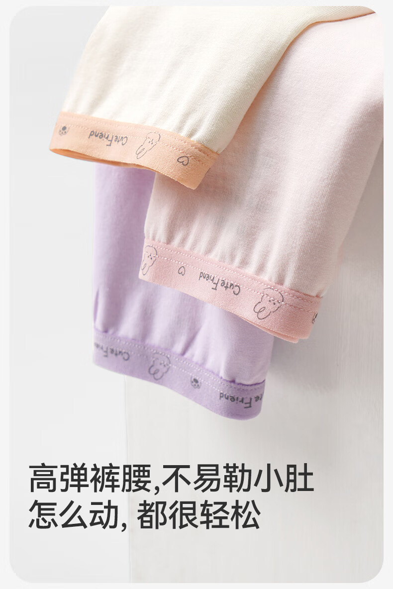 久岁伴儿童内裤女童平角裤薄款中大童6-12岁学生透气抑菌高弹三角裤3条 【粉色小兔】/三角/505048/ 3条 150 身高140-152体重75-90斤