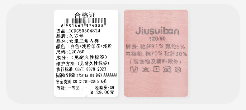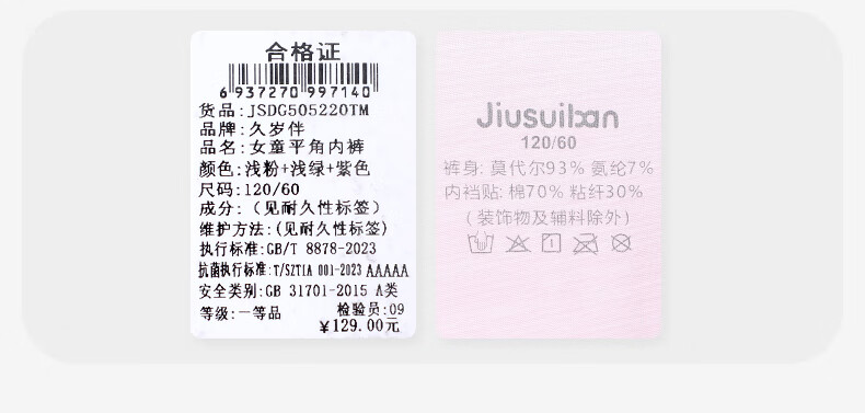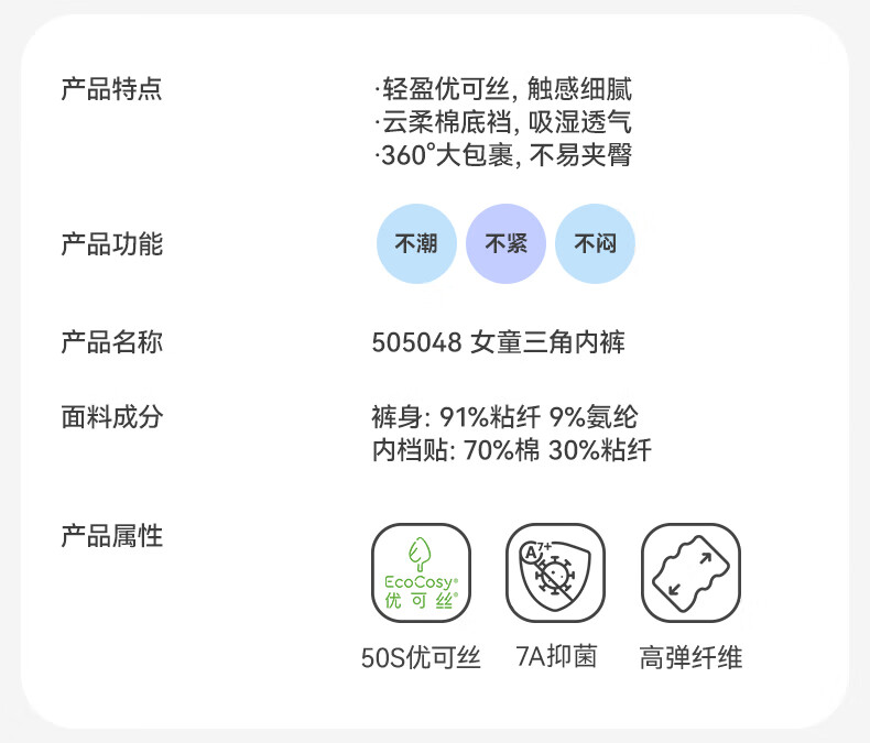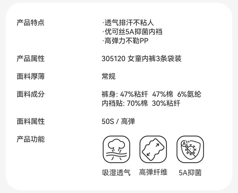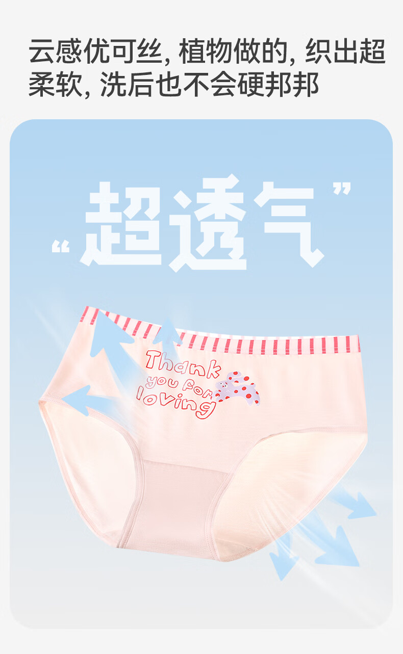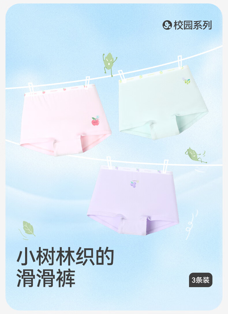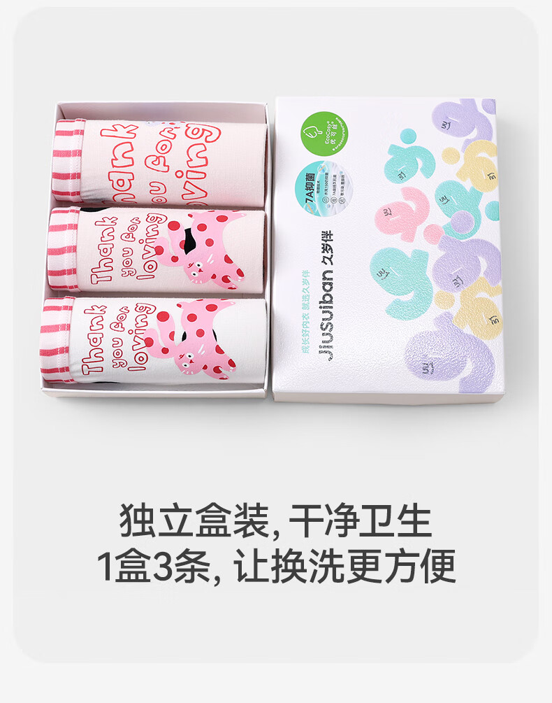 久岁伴儿童内裤女童平角裤薄款中大童6-12岁学生透气抑菌高弹三角裤3条 【粉色小兔】/三角/505048/ 3条 150 身高140-152体重75-90斤