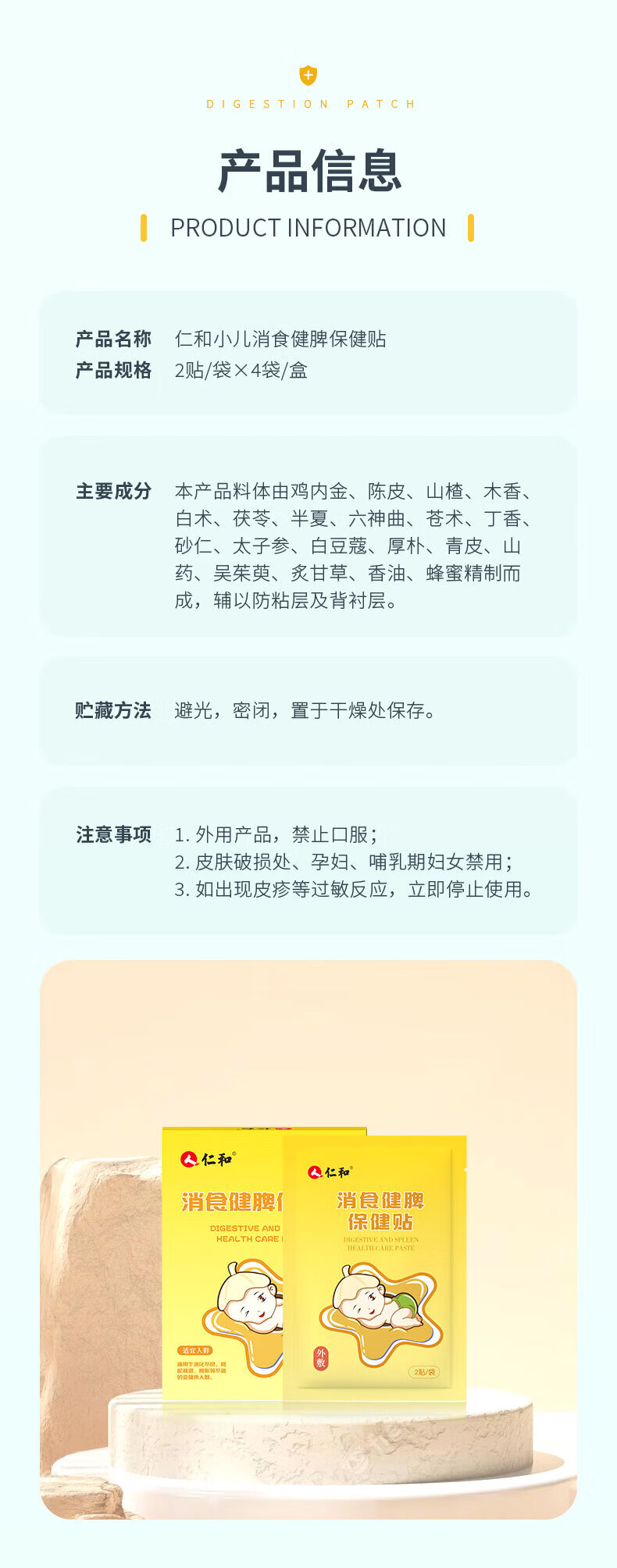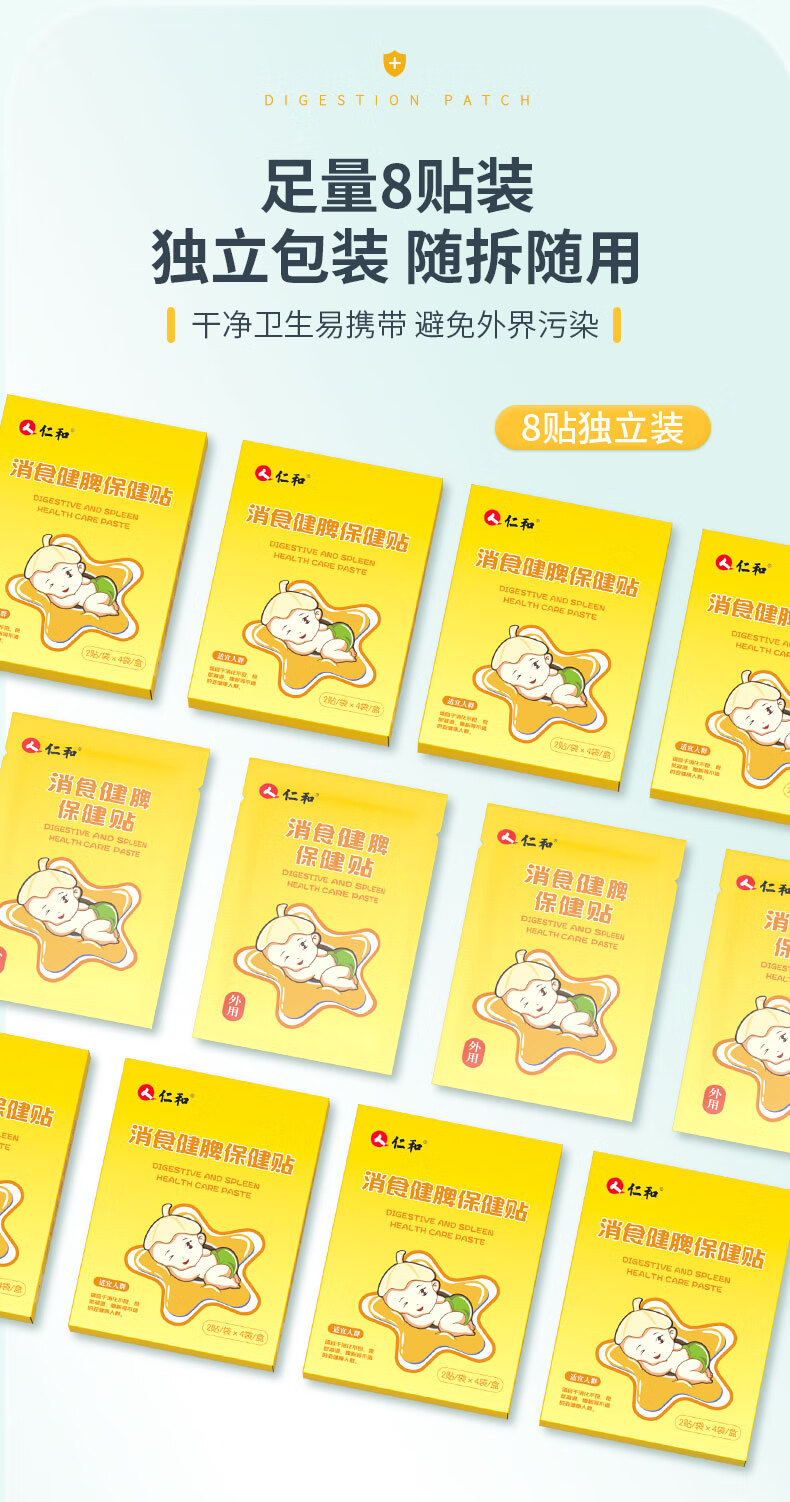 仁和小儿健脾消积食贴婴儿宝宝脾胃调理化积食儿童小儿鸡内金消食贴 1盒8贴【体验装】